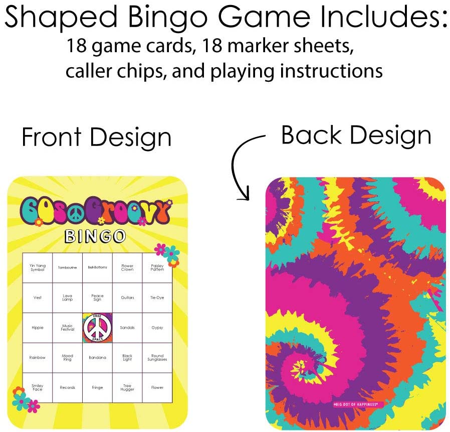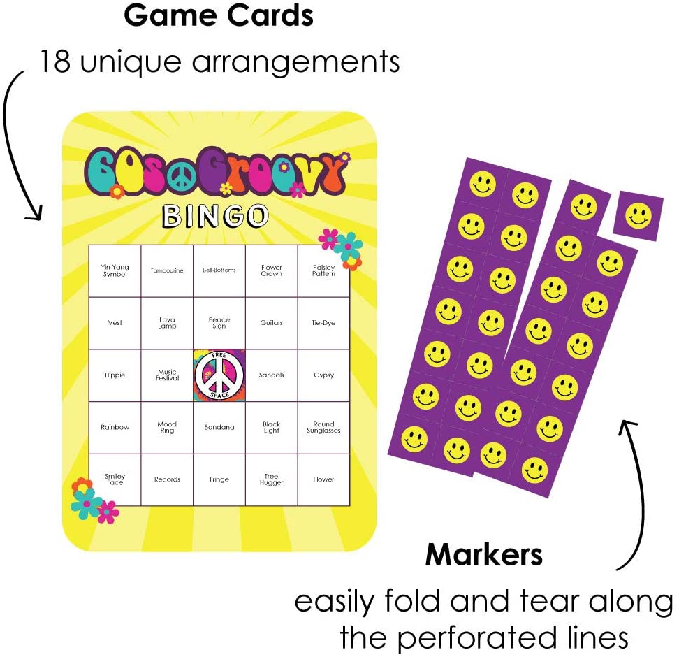 60’s Hippie- Bar Bingo Cards and Markers - 1960s Groovy Party Bingo Game - Set of 18 is backordered and will ship as soon as it is back in stock.