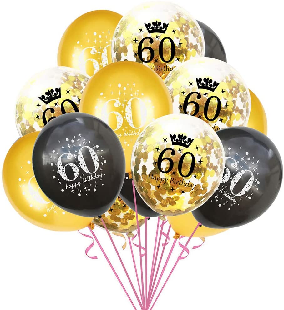 15 Packs Confetti Balloons 12 Inch Latex Clear Birthday Balloons (60 years old) - With Helium