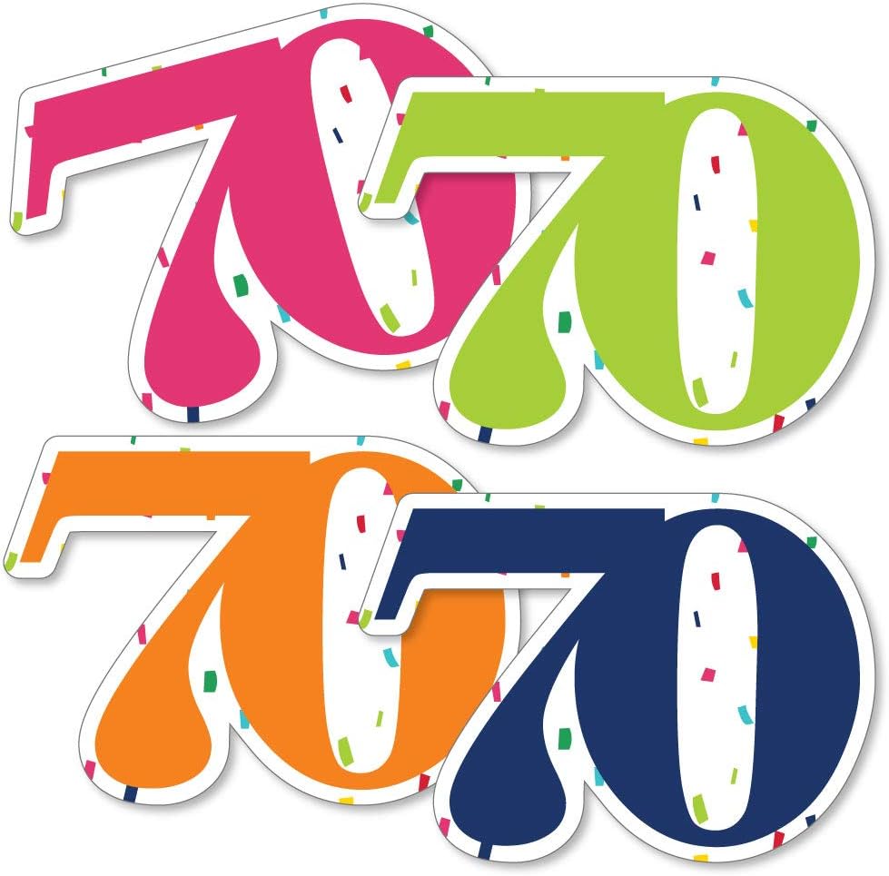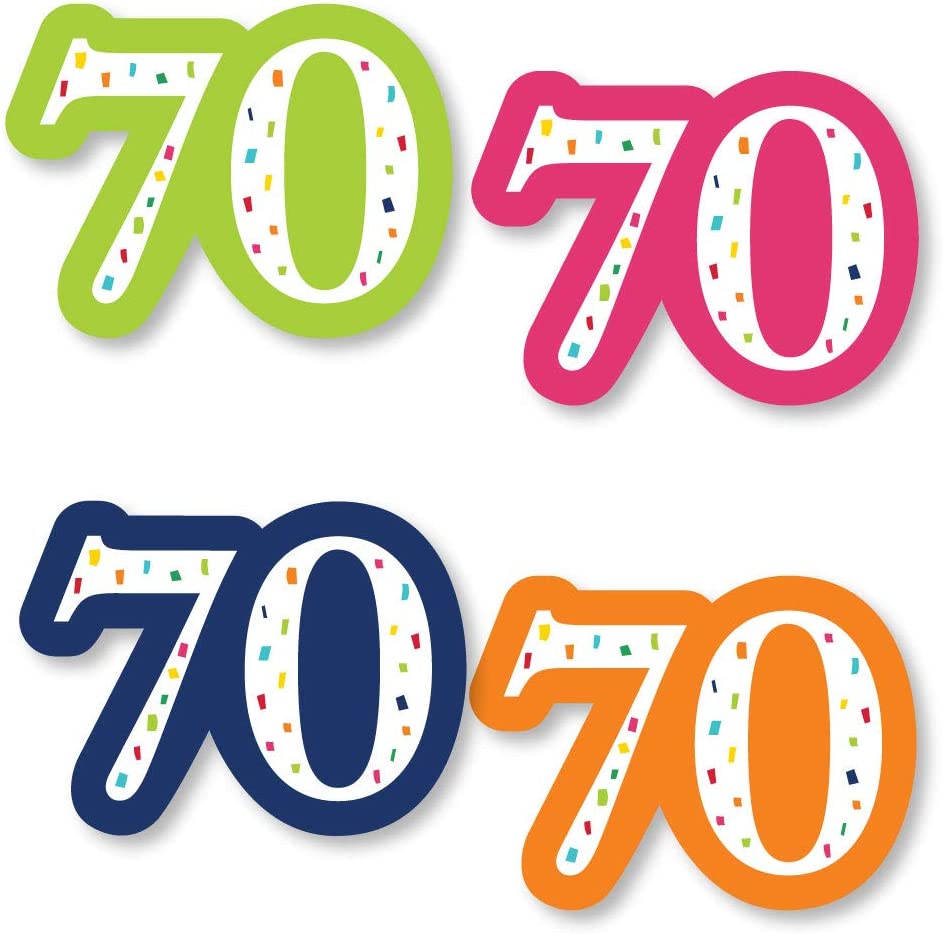70th Birthday - Cheerful Happy Birthday - DIY Shaped Colorful Seventieth Birthday Party Cut-Outs - 24 Count