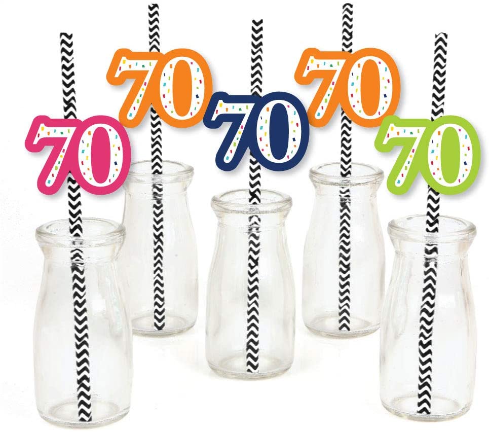70th Birthday - Cheerful Happy Birthday - Paper Straw Decor - Colorful Seventieth Birthday Party Striped Decorative Straws - Set of 24