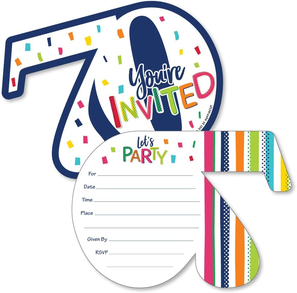 70th Birthday - Cheerful Happy Birthday - Shaped Fill-In Invitations - Colorful Seventieth Birthday Party Invitation Cards with Envelopes - Set of 12