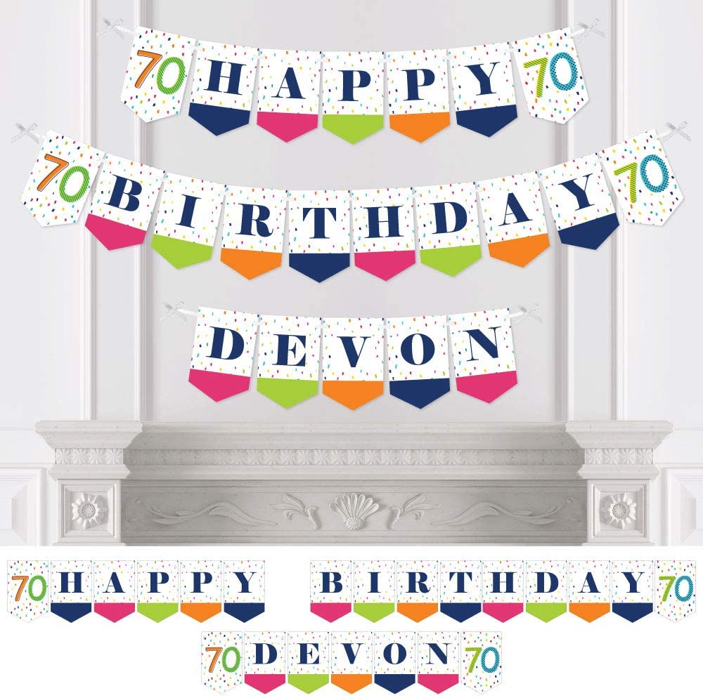 Personalized 70th Birthday - Cheerful Happy Birthday - Custom Colorful Seventieth Birthday Party Bunting Banner & Decorations - Happy Birthday Custom Name Banner