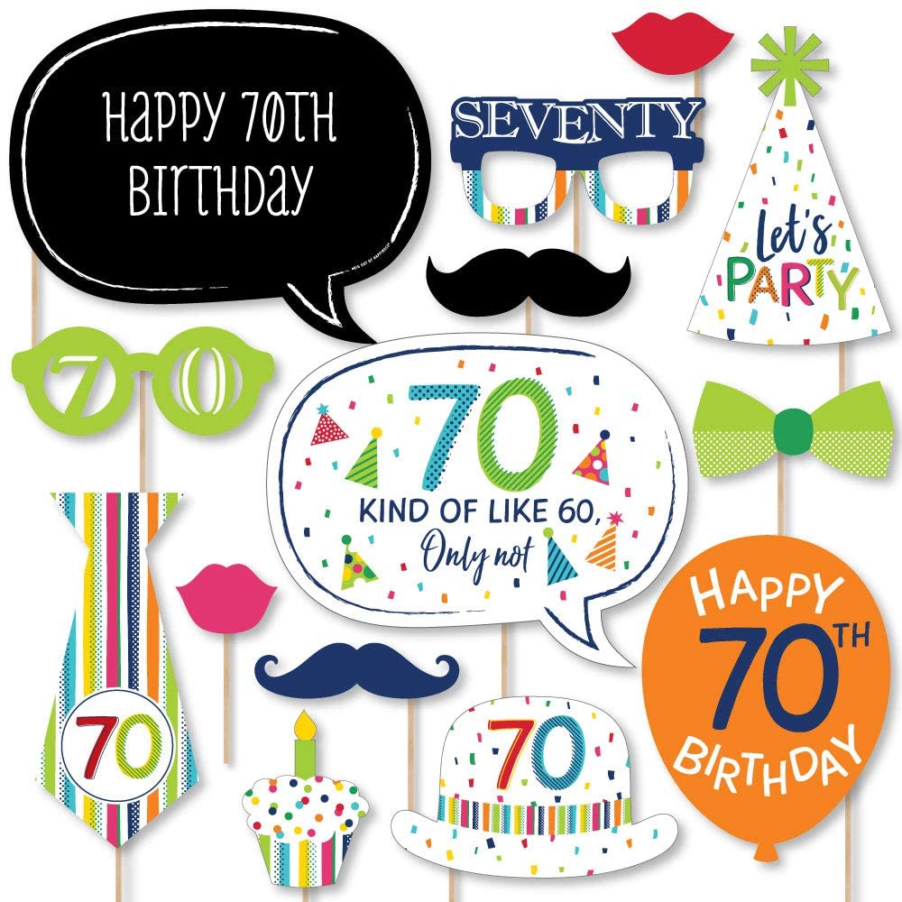Funny 70th Birthday - Cheerful Happy Birthday - Colorful Seventieth Birthday Party Photo Booth Props Kit - 10 Piece