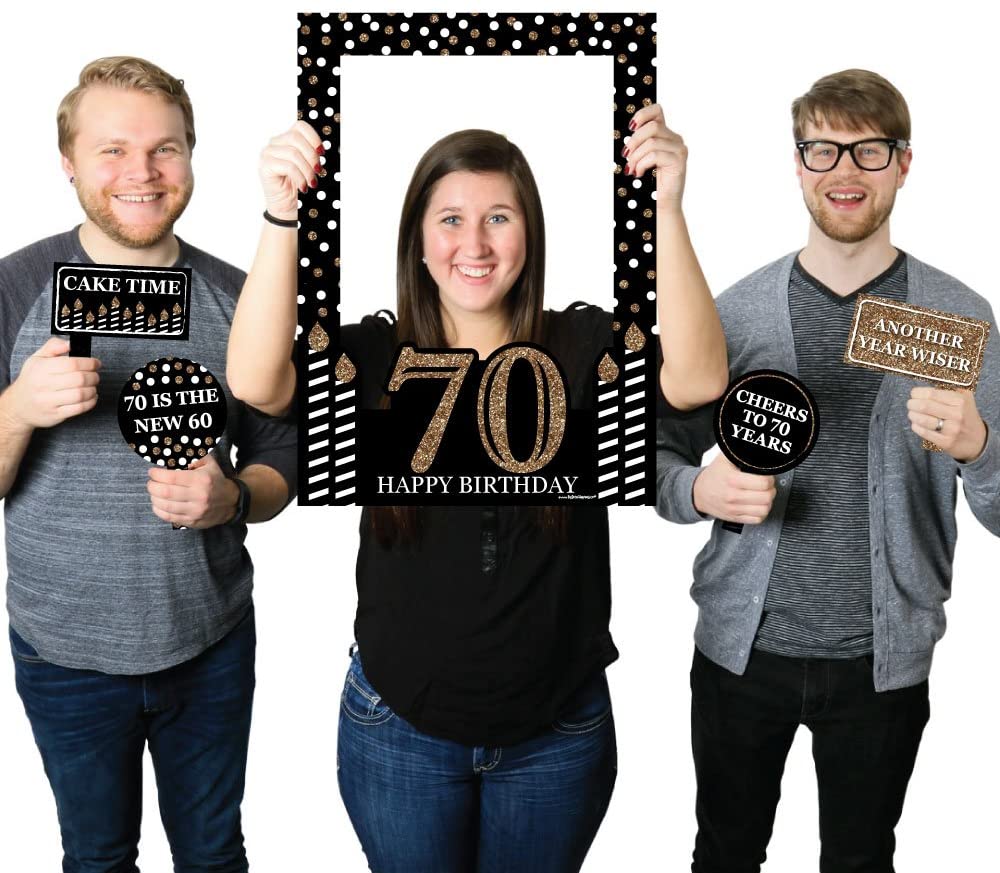 Adult 70th Birthday - Gold - Birthday Party Selfie Photo Booth Picture Frame & Props is backordered and will ship as soon as it is back in stock.