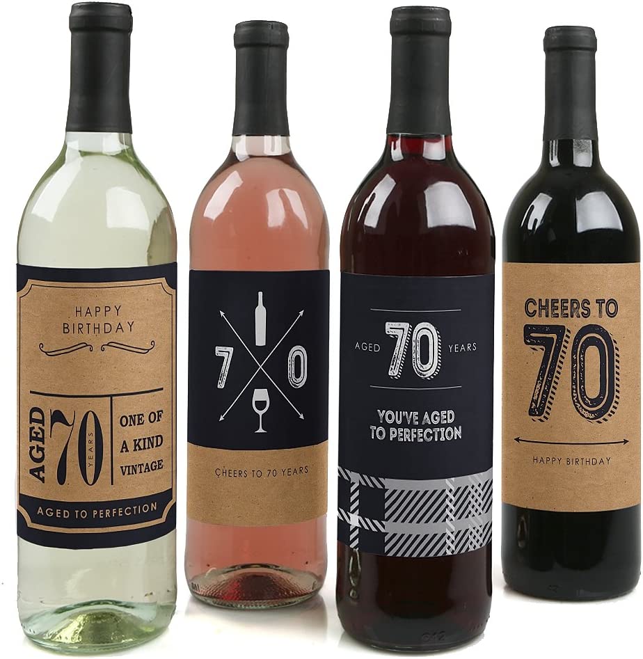70th Milestone Birthday - Dashingly Aged to Perfection - Birthday Gift For Men - Wine Bottle Label Stickers - Set of 4