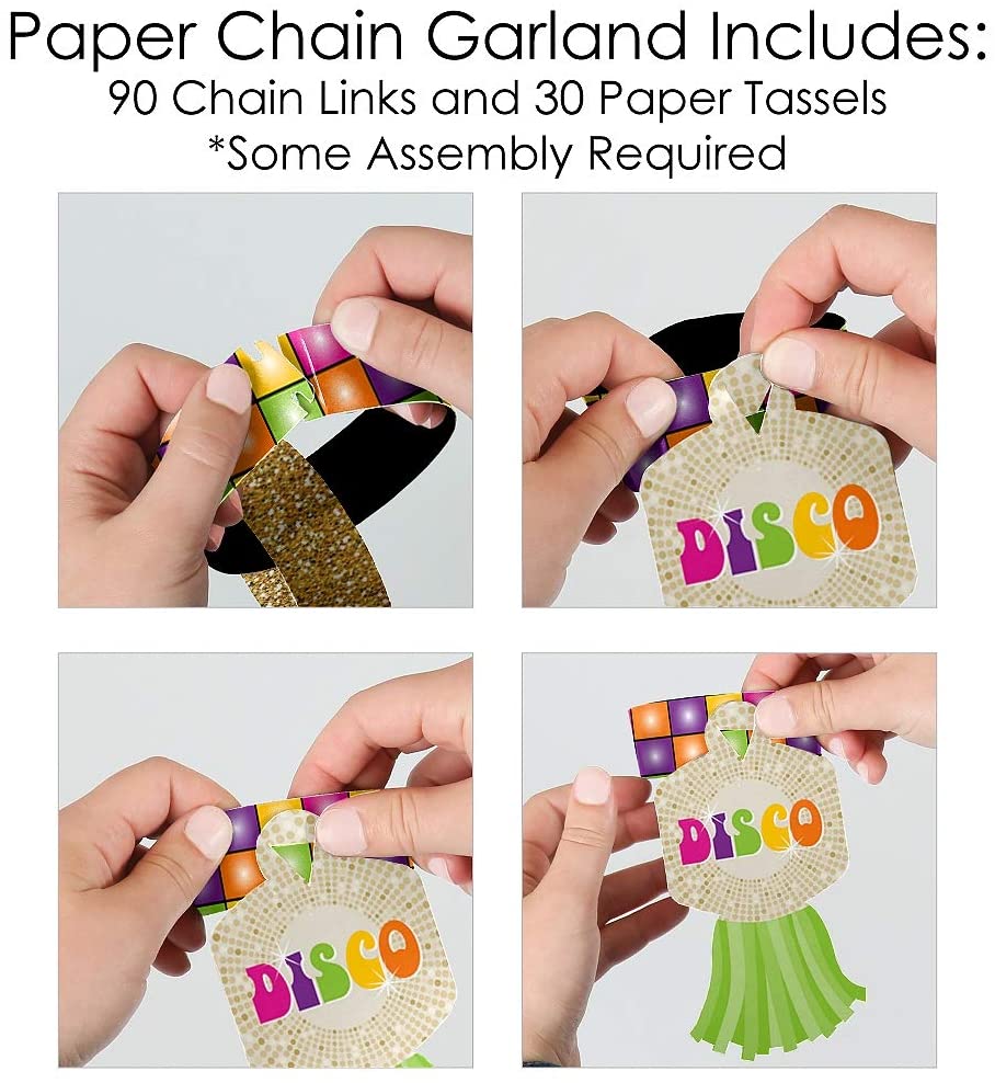 70’s Disco - 90 Chain Links and 30 Paper Tassels Decoration Kit - 1970s Disco Fever Party Paper Chains Garland - 21 feet is backordered and will ship as soon as it is back in stock.