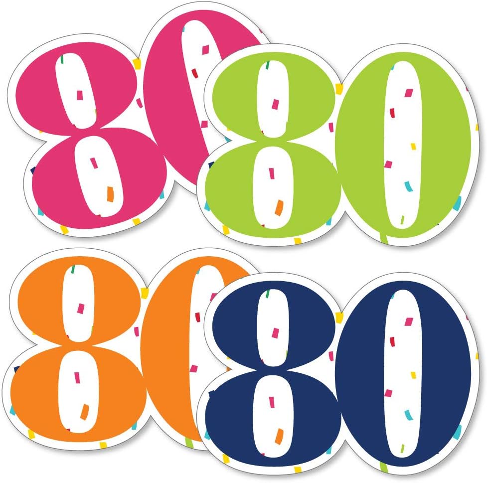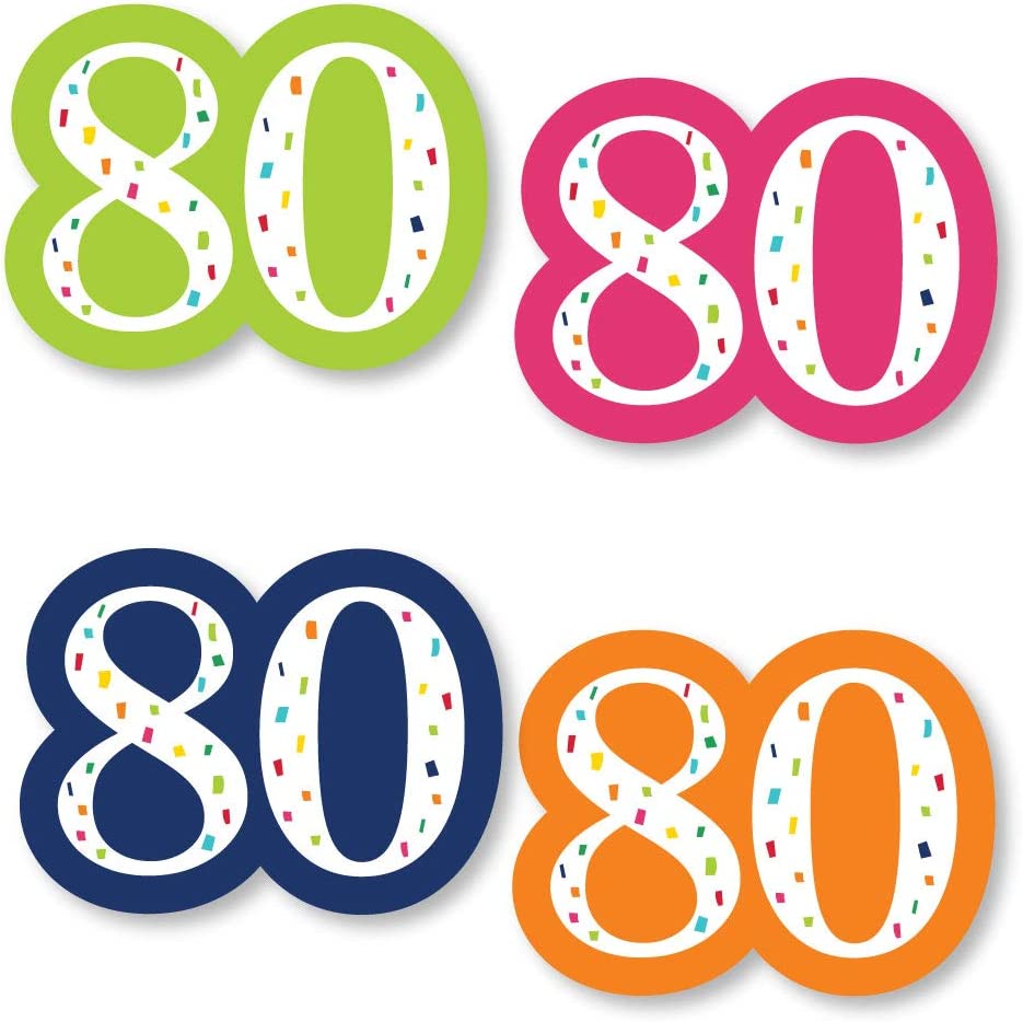 80th Birthday - Cheerful Happy Birthday - DIY Shaped Colorful Eightieth Birthday Party Cut-Outs - 24 Count