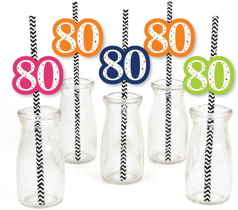 80th Birthday - Cheerful Happy Birthday - Paper Straw Decor - Colorful Eightieth Birthday Party Striped Decorative Straws - Set of 24