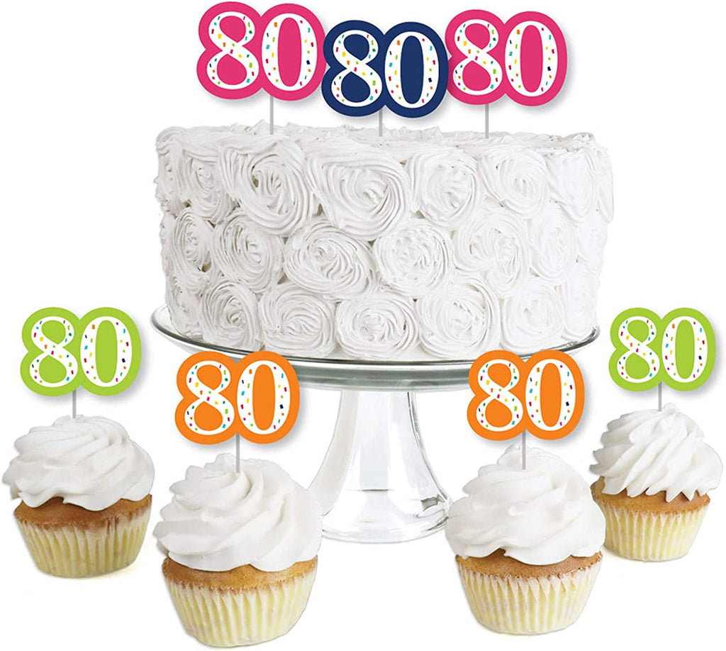 80th Birthday - Cheerful Happy Birthday - Dessert Cupcake Toppers - Colorful Eightieth Birthday Party Clear Treat Picks - Set of 24