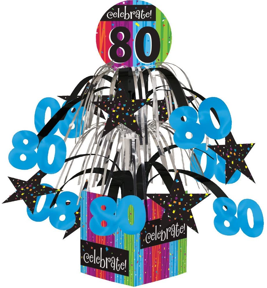 Party Decoration Metallic Foil Cascading Centerpiece, Milestone Celebrations 80th