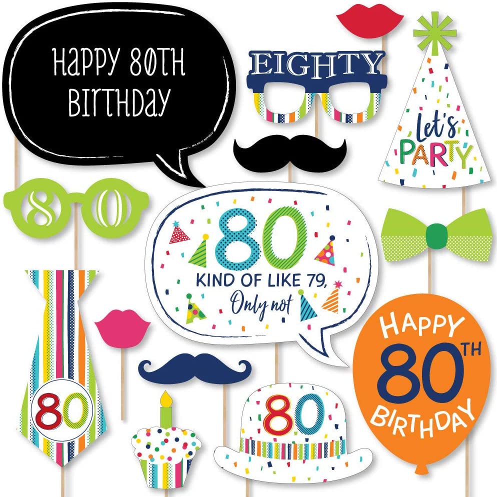80th Birthday - Cheerful Happy Birthday - Colorful Eightieth Birthday Party Photo Booth Props Kit - 20 Count