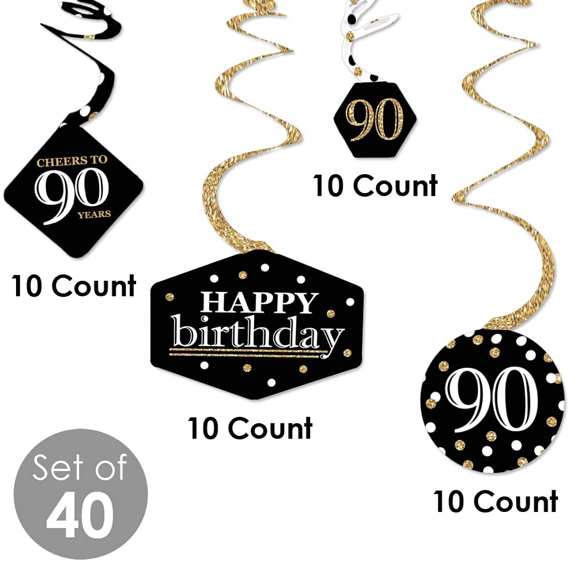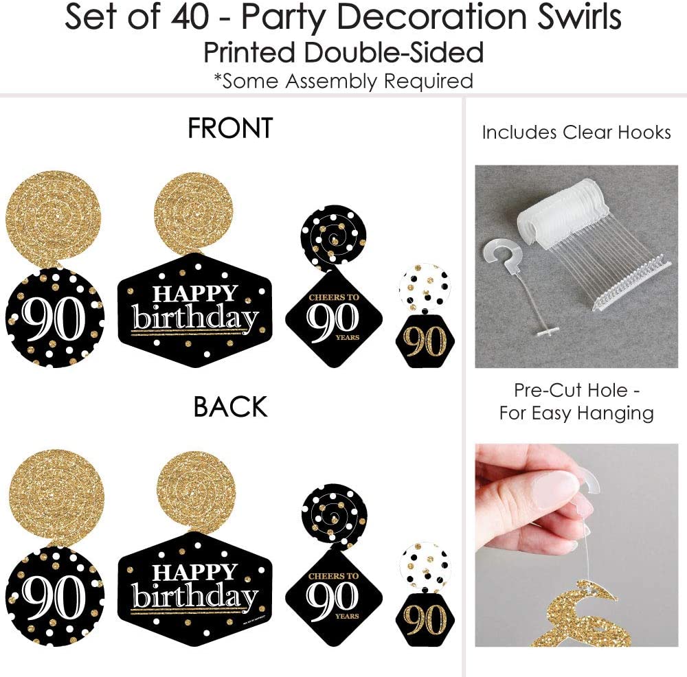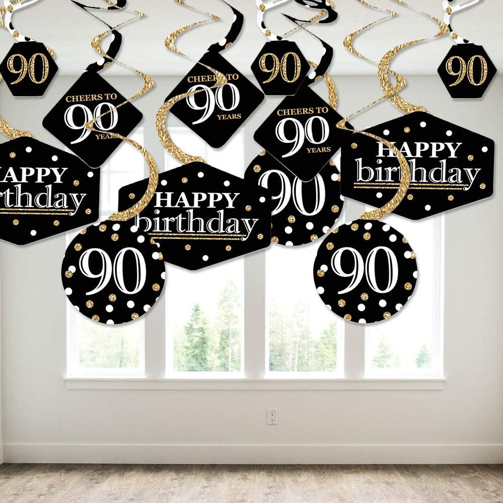 • HIGH-QUALITY PARTY SUPPLY: Adult 90th Birthday - Gold Party Decoration Swirls are professionally printed and double-sided on heavy-duty cardstock paper. They are individually cut, inspected, and carefully packaged. Each swirl will use one clear hook.
