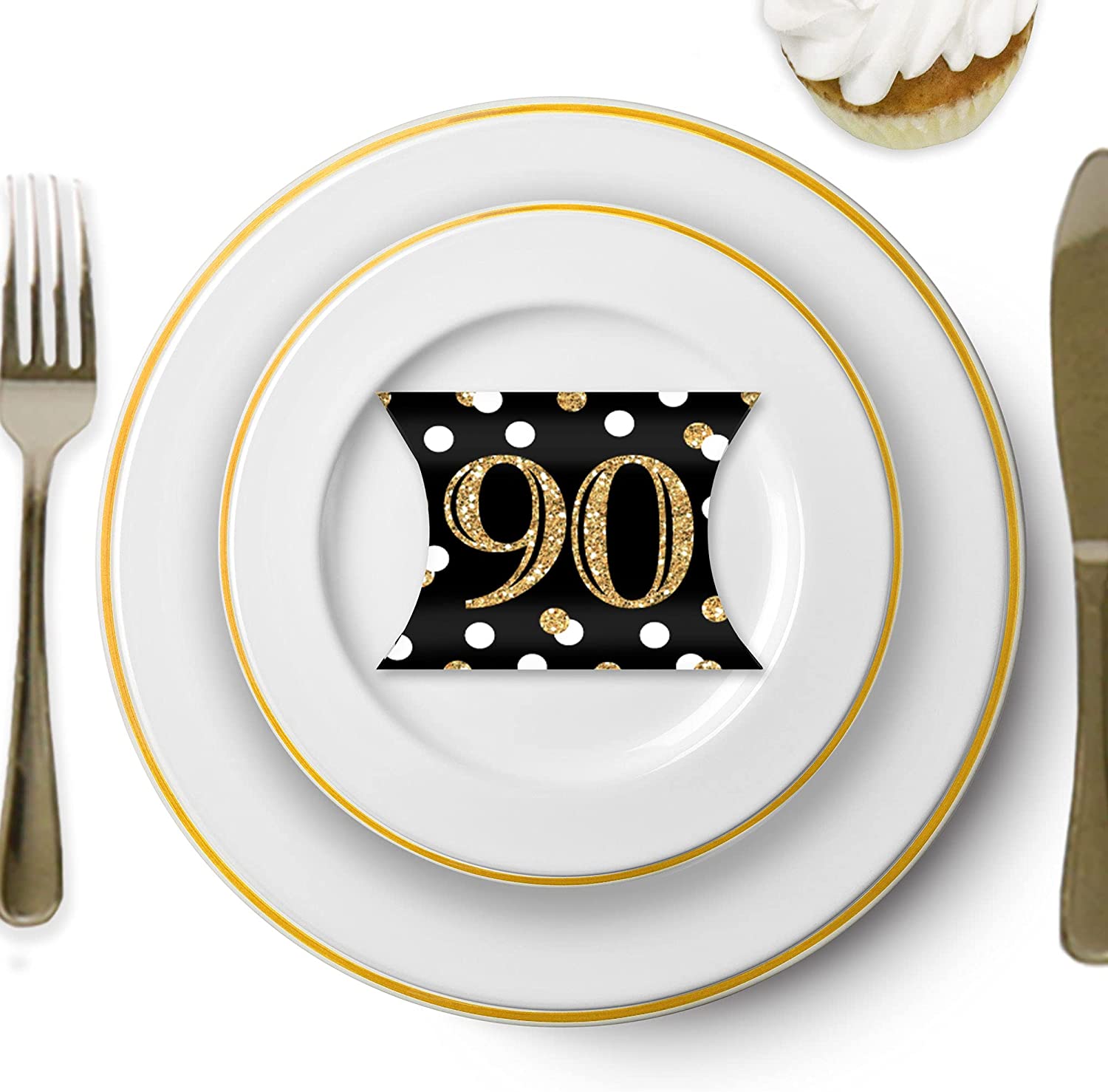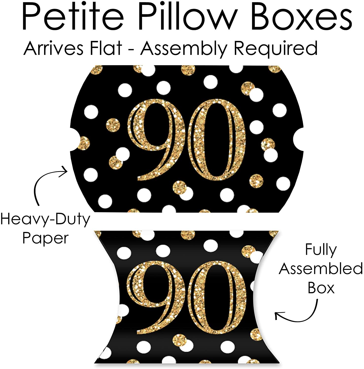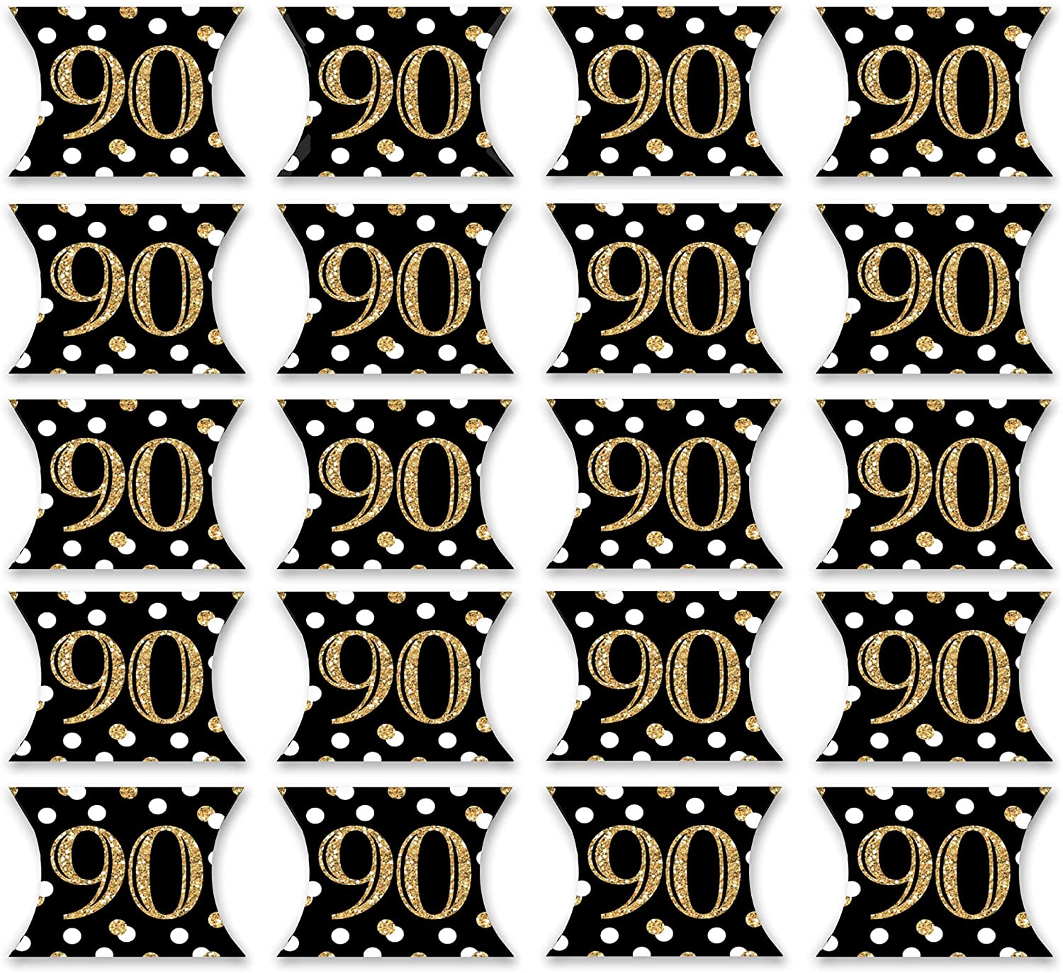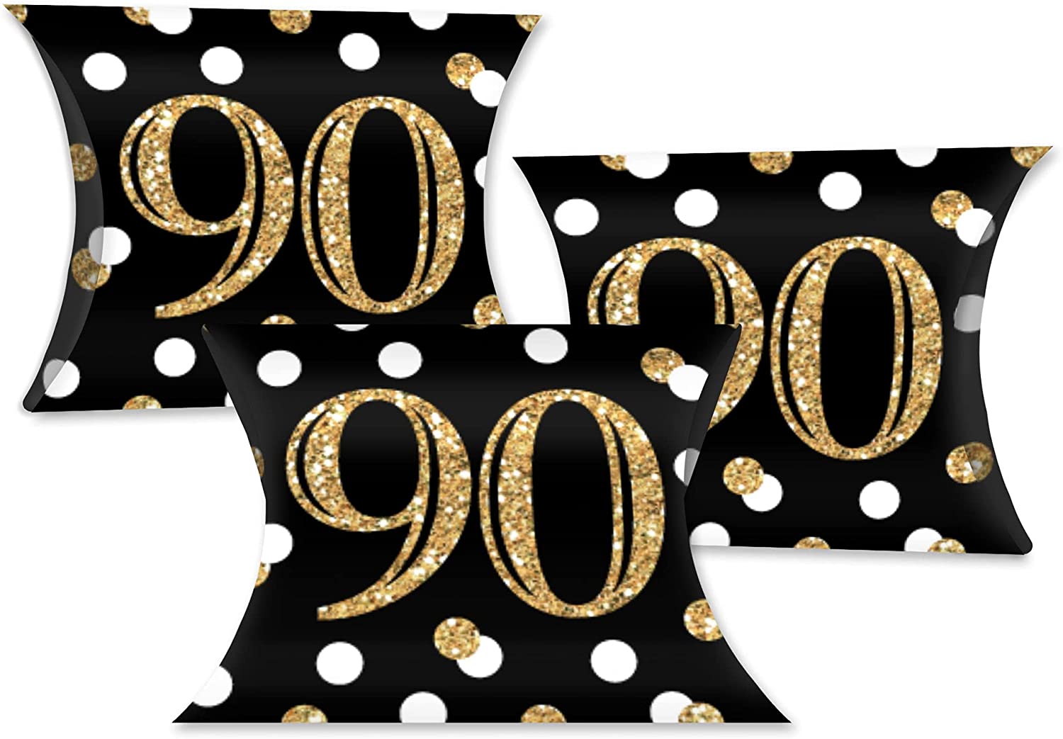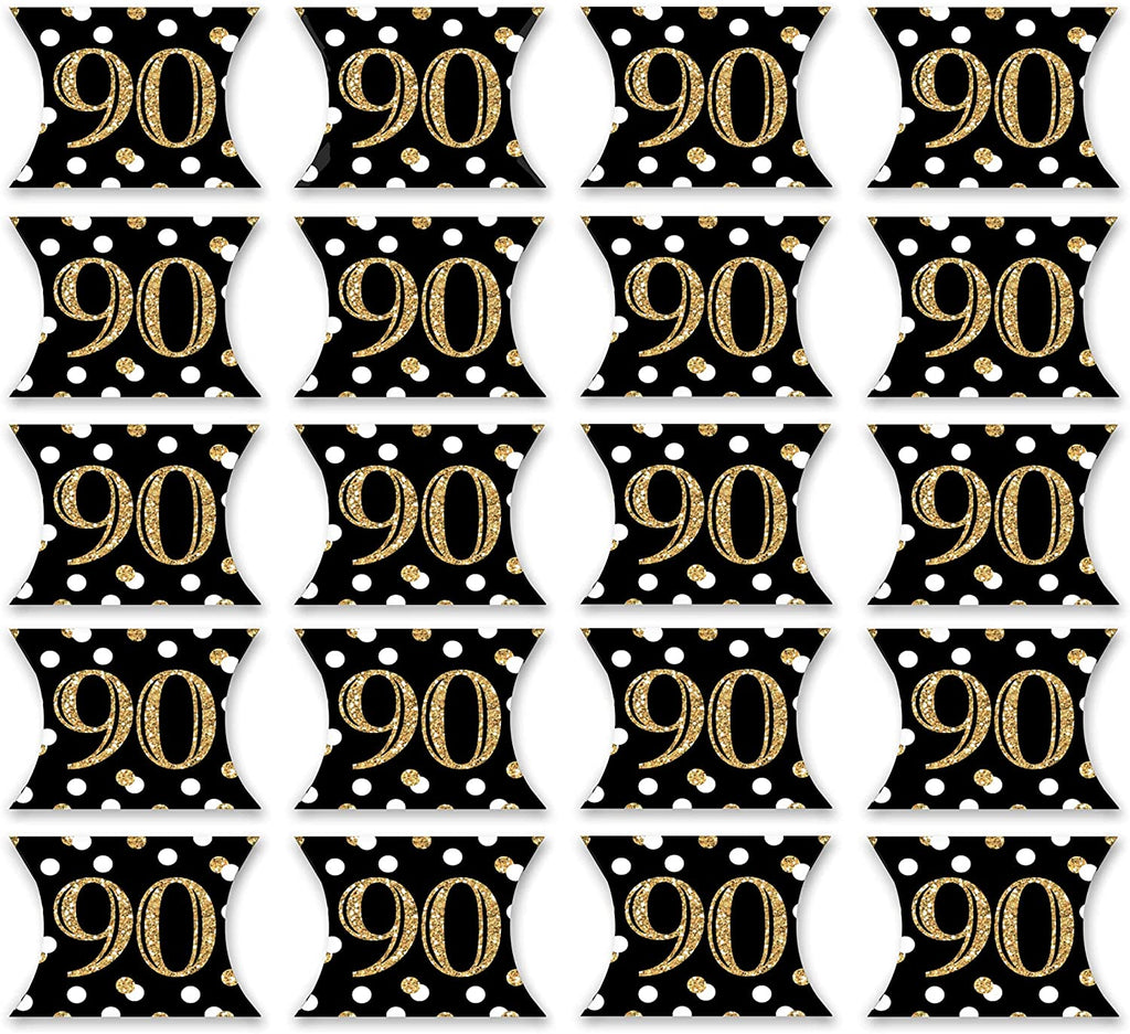 Adult 90th Birthday - Gold - Favor Gift Boxes - Birthday Party Petite Pillow Boxes - Set of 20 is backordered and will ship as soon as it is back in stock.