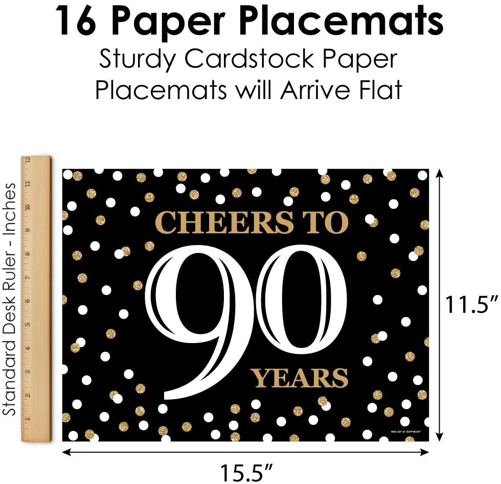 Adult 90th Birthday - Gold - Party Table Decorations - Birthday Party Placemats - Set of 16 is backordered and will ship as soon as it is back in stock.
