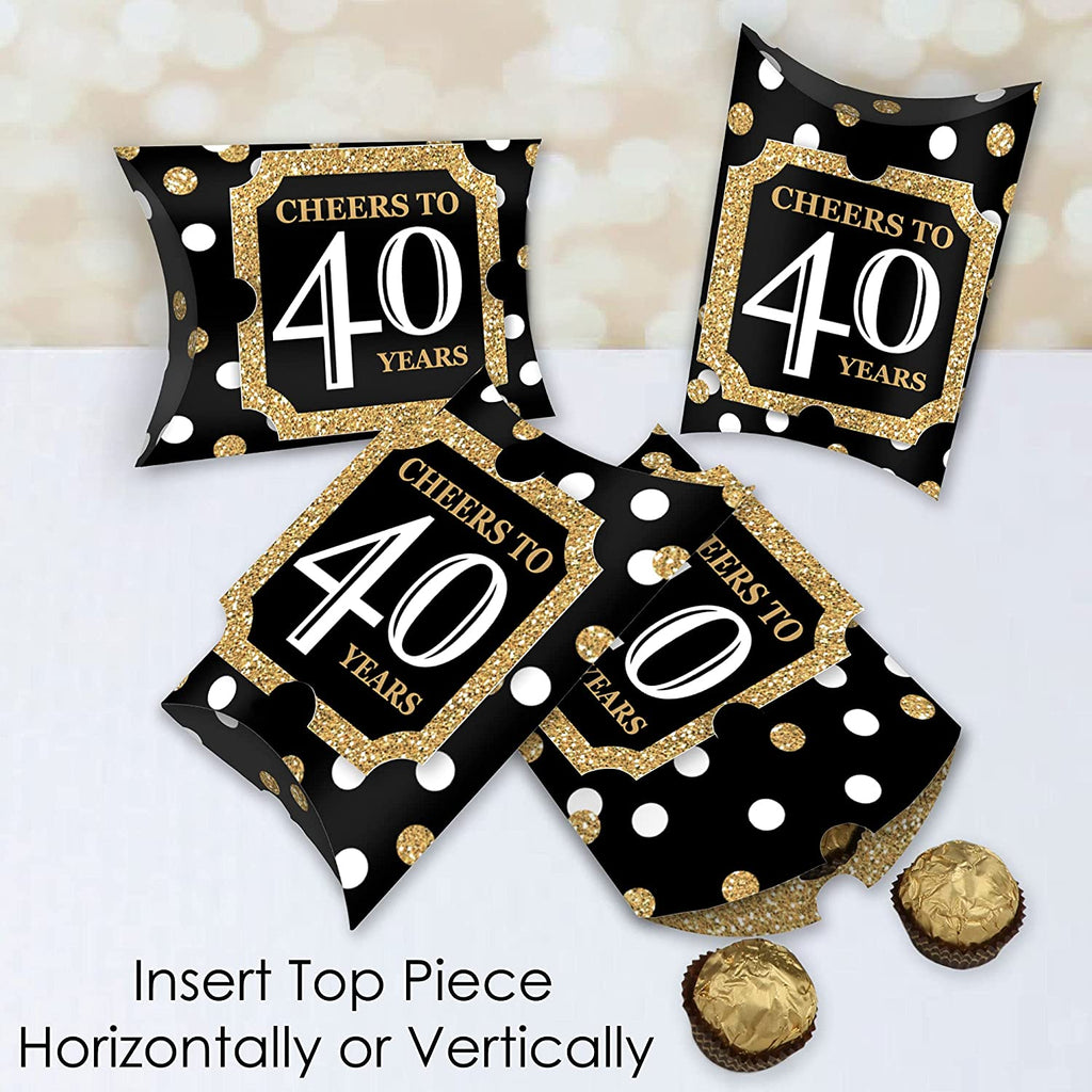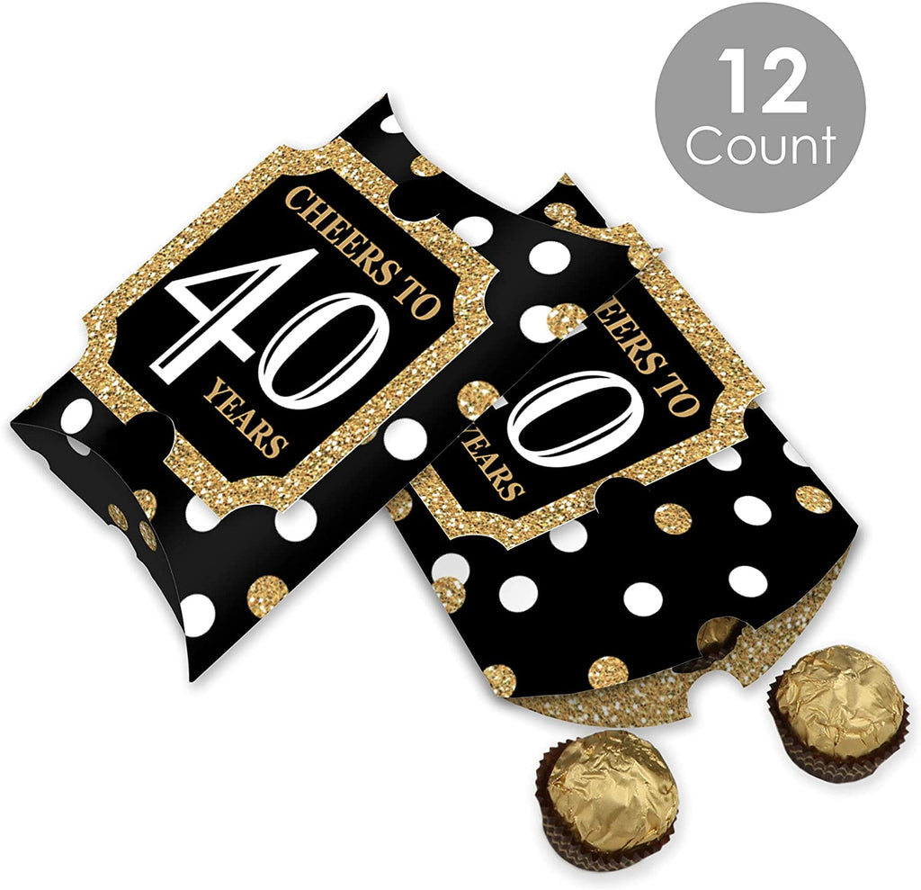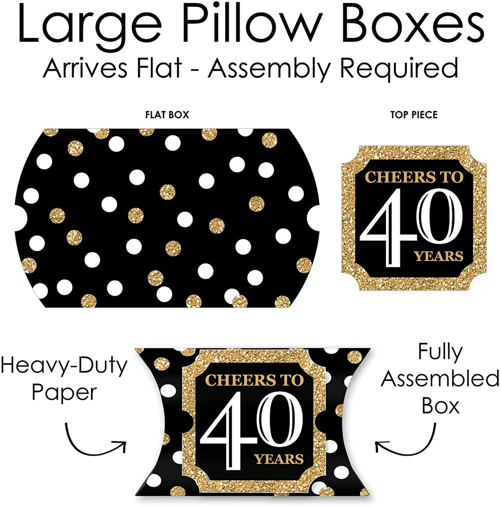 Adult 40th Birthday - Gold - Favor Gift Boxes - Birthday Party Large Pillow Boxes - Set of 12 is backordered and will ship as soon as it is back in stock.