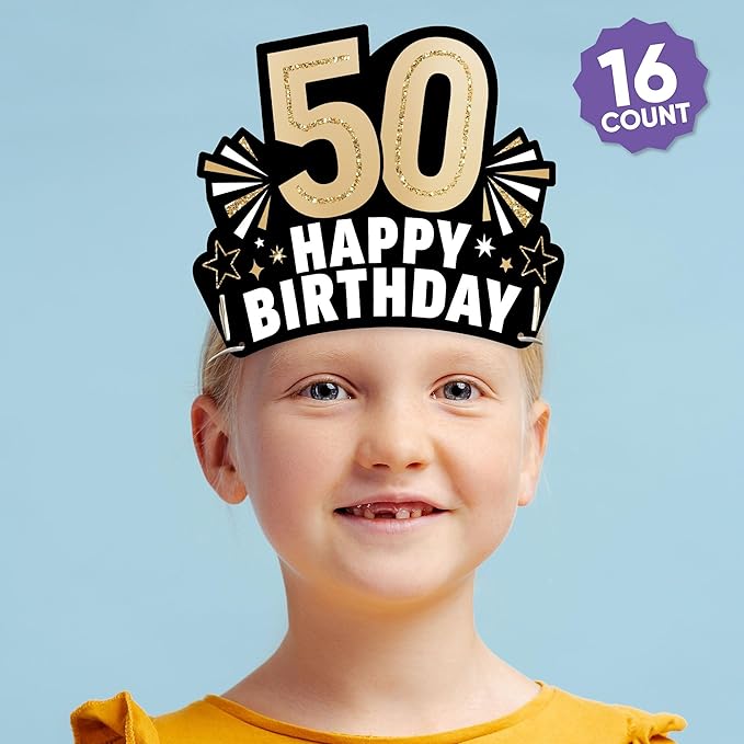 - Set of 16 Paper 50th Happy Birthday Headbands