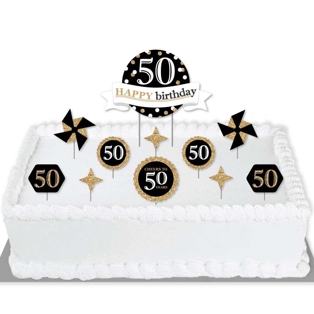 Adult 50th Birthday - Gold - Birthday Party Cake Decorating Kit - Happy Birthday Cake Topper Set - 11 Pieces