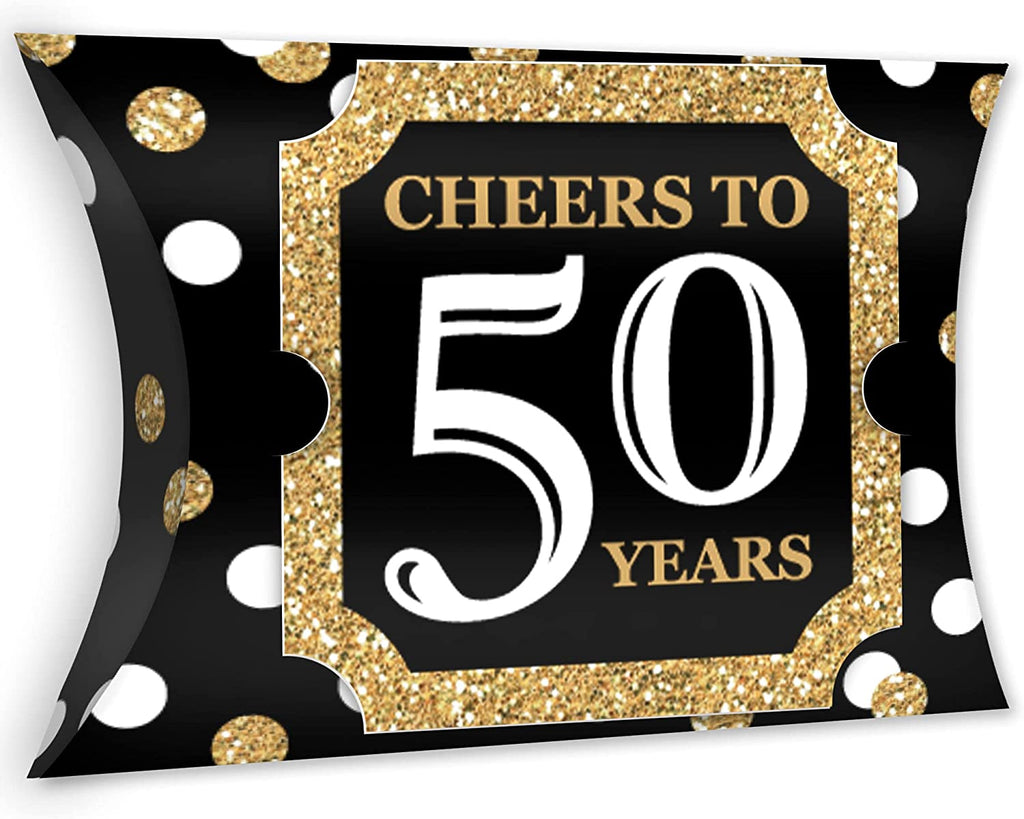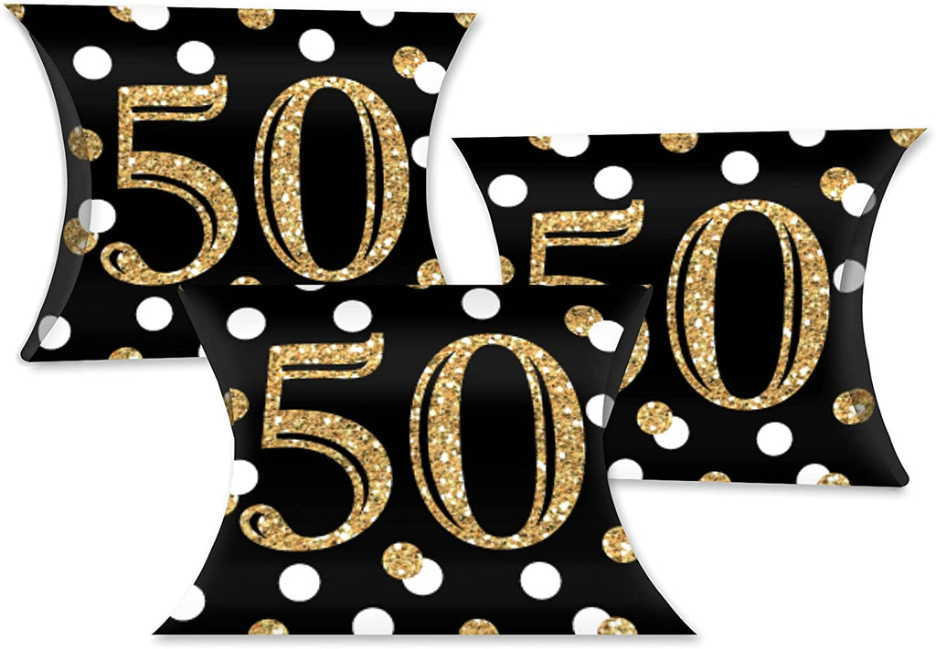 Adult 50th Birthday - Gold - Favor Gift Boxes - Birthday Party Large Pillow Boxes - Set of 12