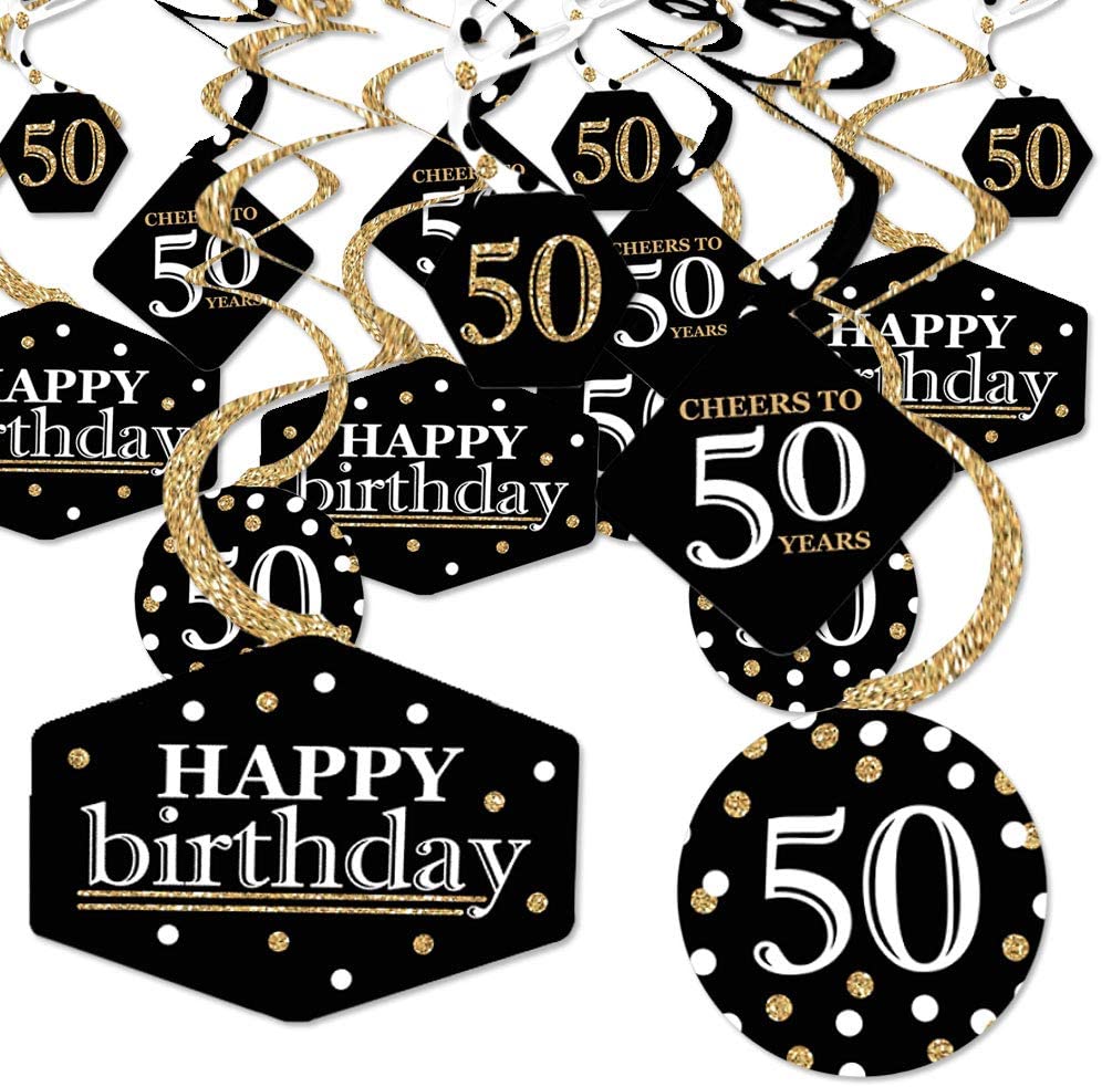 Adult 50th Birthday - Gold - Birthday Party Hanging Decor - Party Decoration Swirls - Set of 40