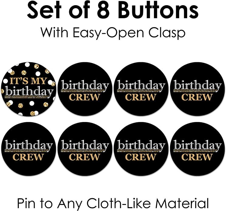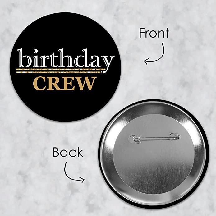 Adult Happy Birthday - Gold - 3 inch Birthday Party Badge - Pinback Buttons - Set of 8 is backordered and will ship as soon as it is back in stock.