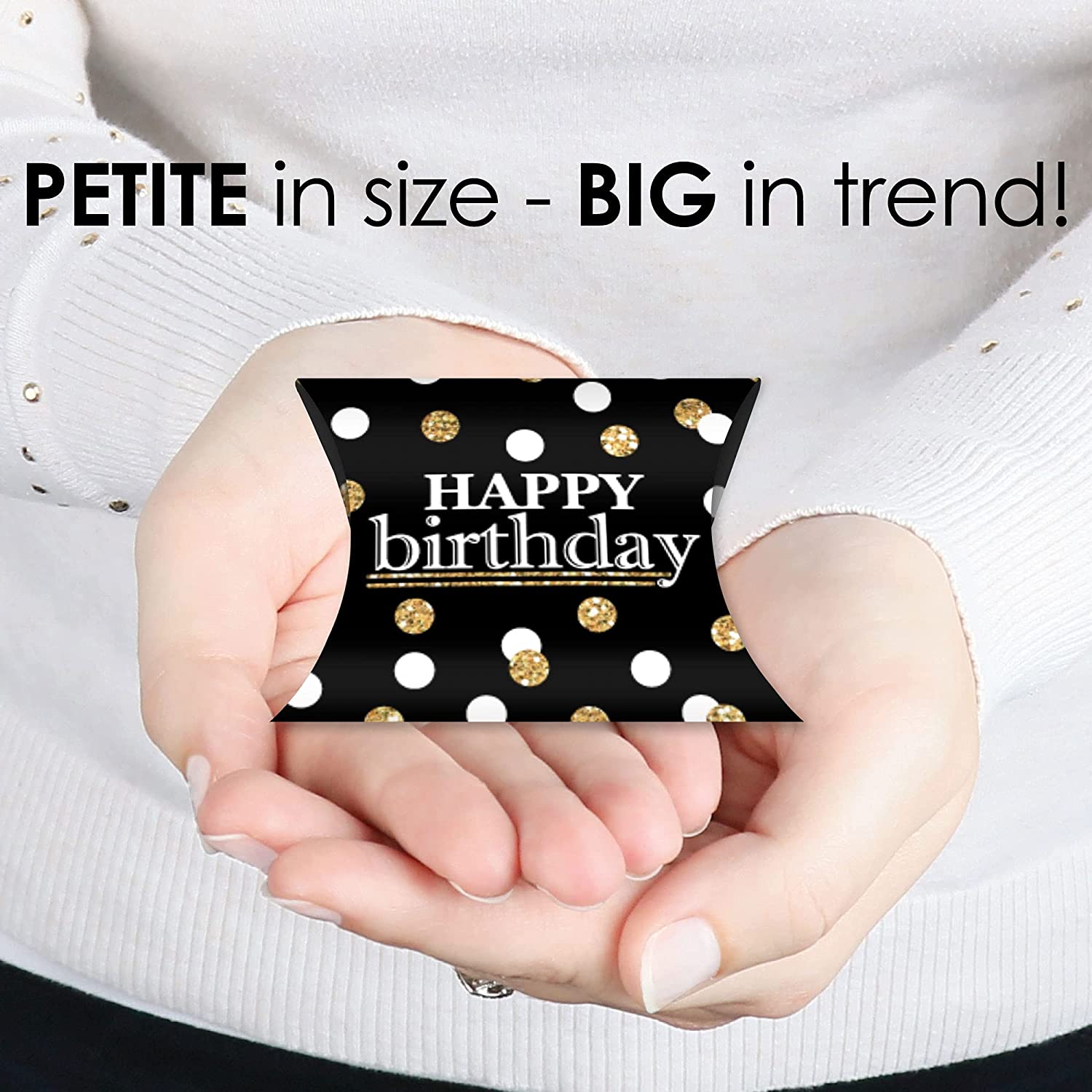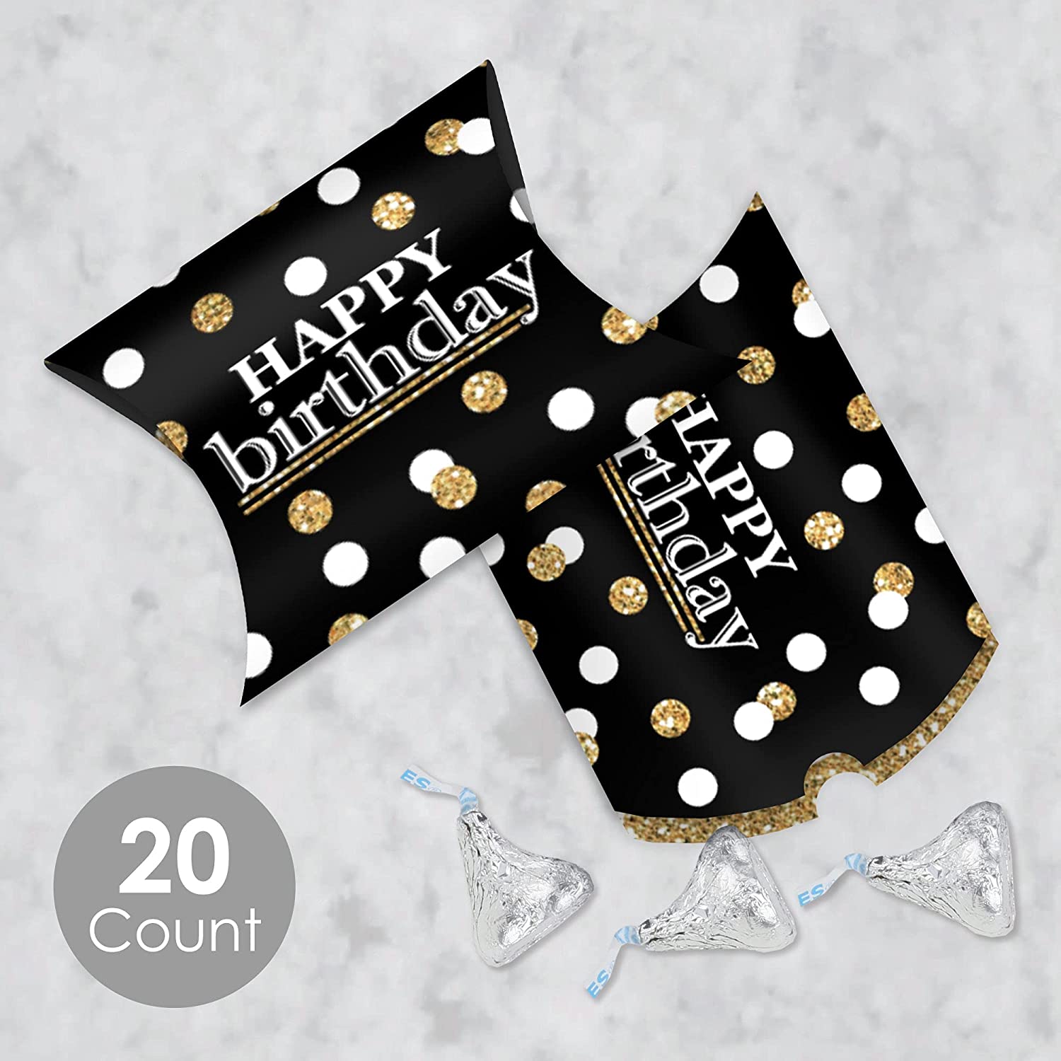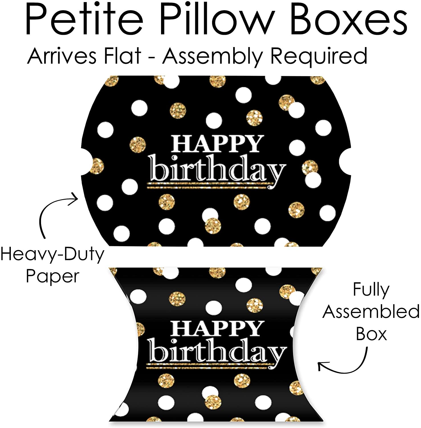 Adult Happy Birthday - Gold - Favor Gift Boxes - Birthday Party Petite Pillow Boxes - Set of 20 is backordered and will ship as soon as it is back in stock.