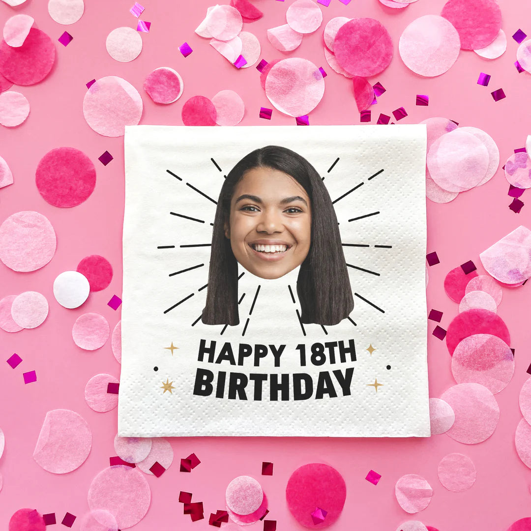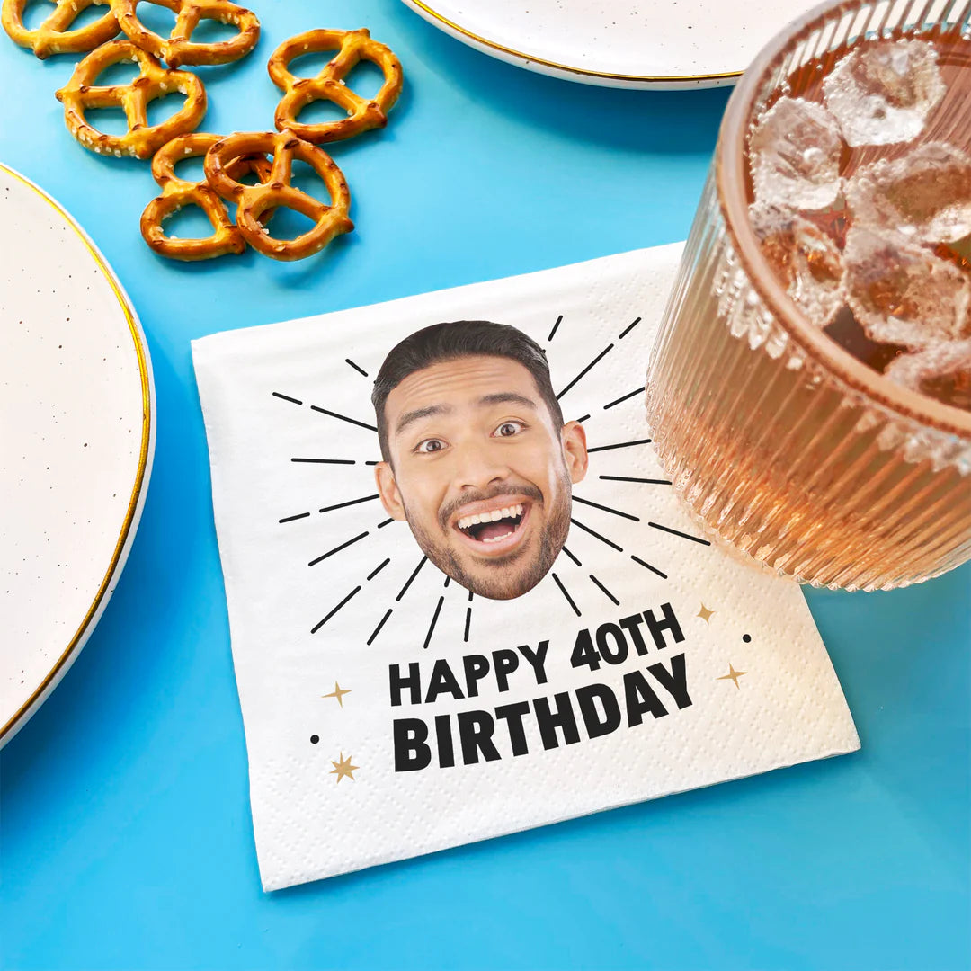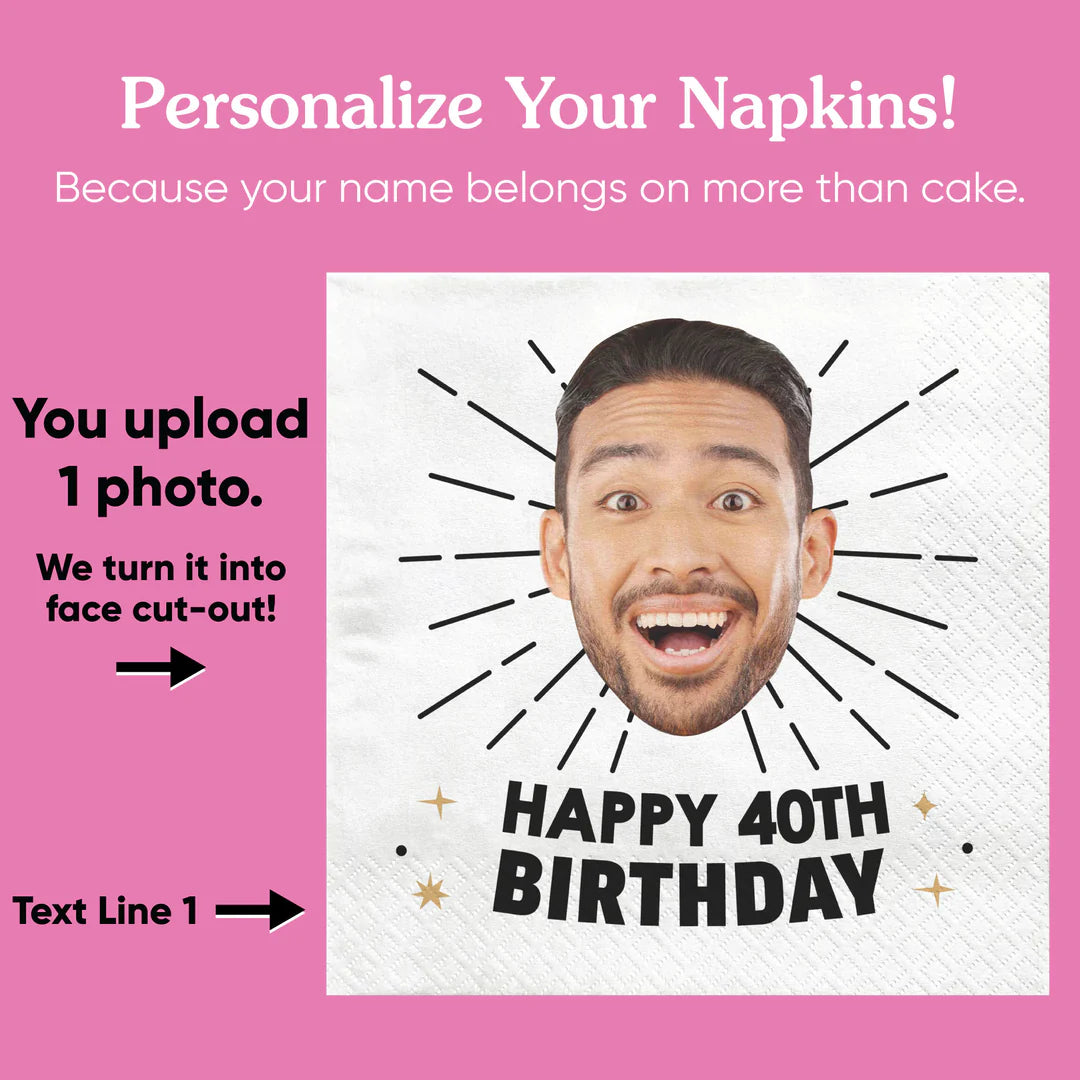 Their face + their age = total party perfection (and a guaranteed laugh). These Custom Birthday Napkins are the easiest way to turn appetizers into conversation starters and make the drink station double as a photo op. Upload a pic and give us the age—they’ll get the full cutout treatment (yep, background removed and all). Whether it’s a first birthday, sweet sixteen, or the big 4-0, these napkins bring the funny.