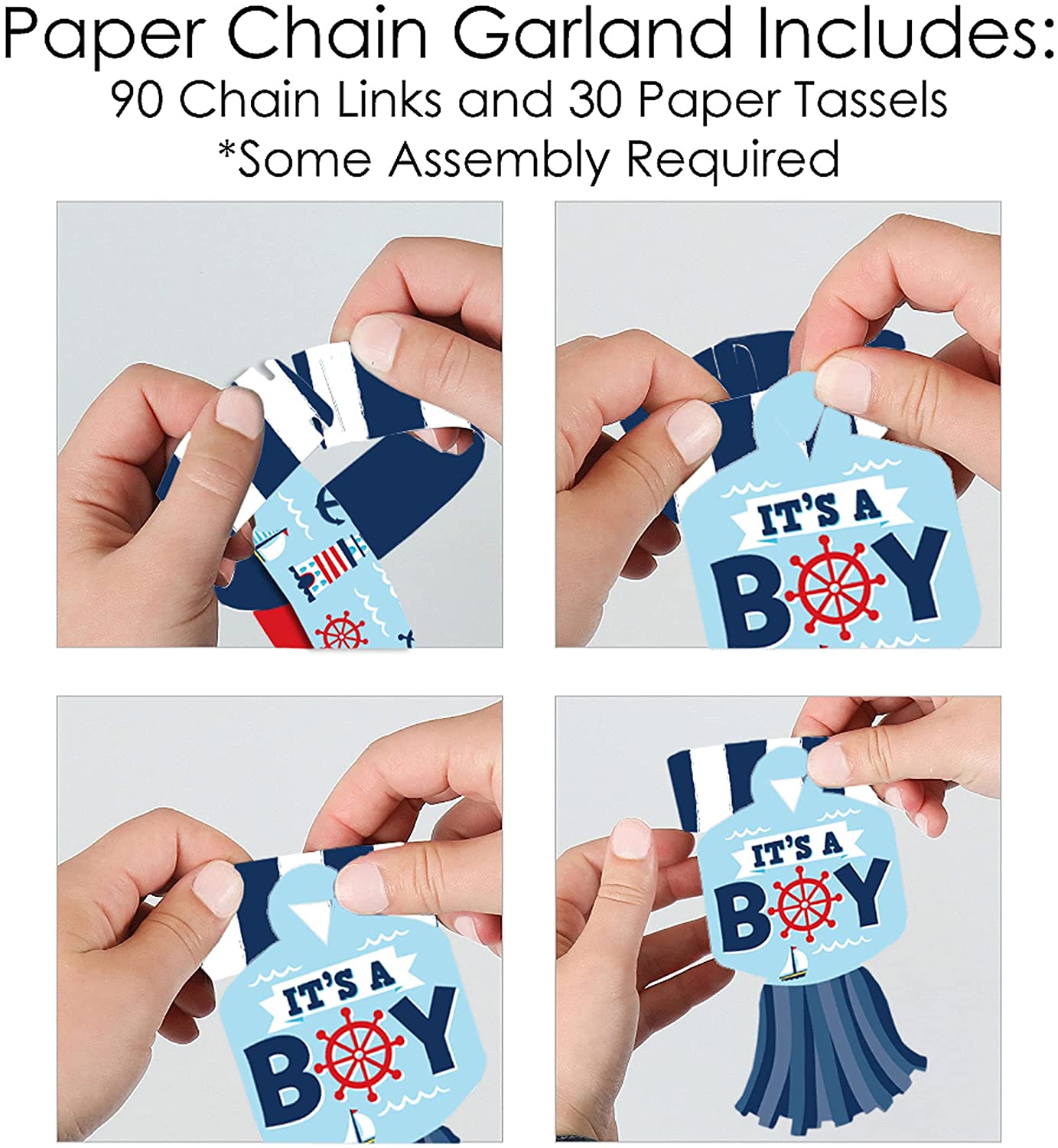 Ahoy It’s a Boy - 90 Chain Links and 30 Paper Tassels Decoration Kit - Nautical Baby Shower Paper Chains Garland - 21 feet is backordered and will ship as soon as it is back in stock.