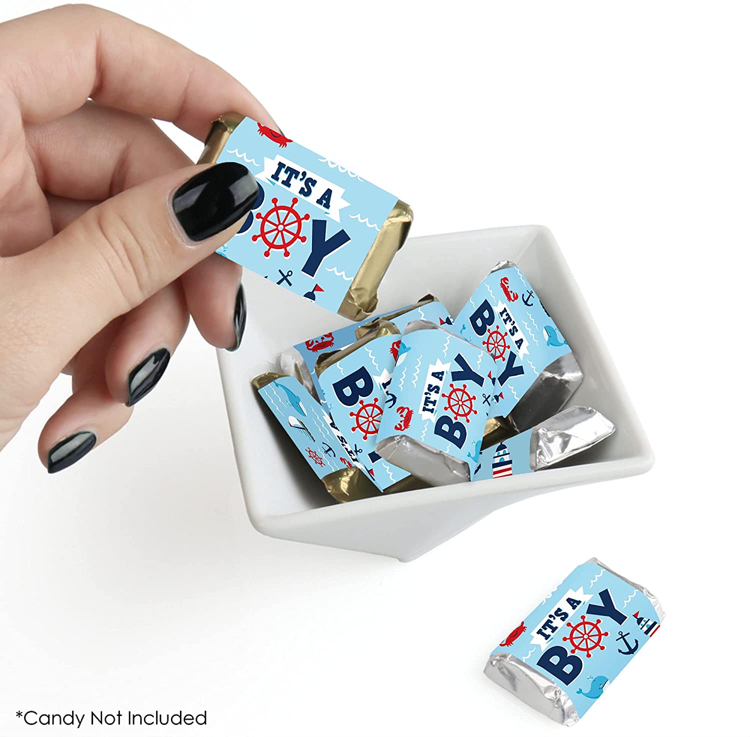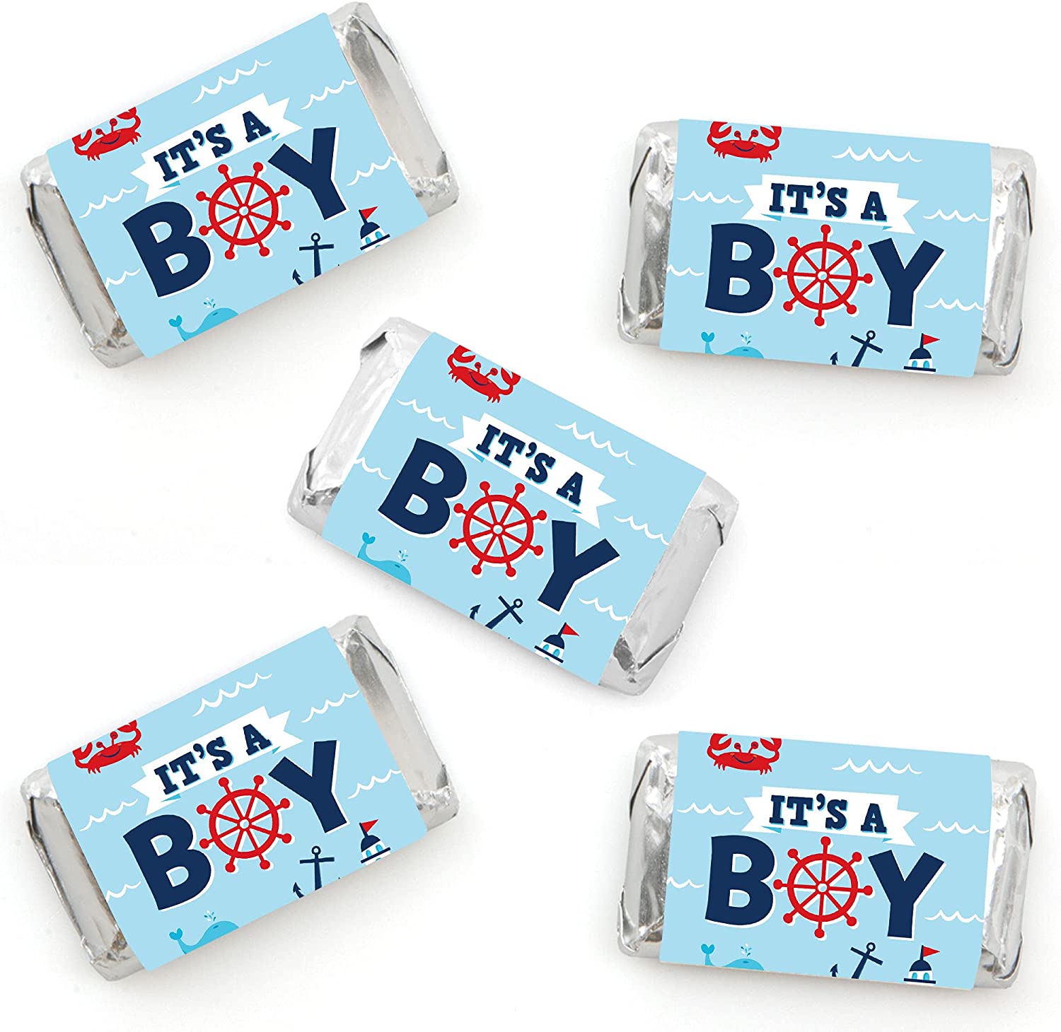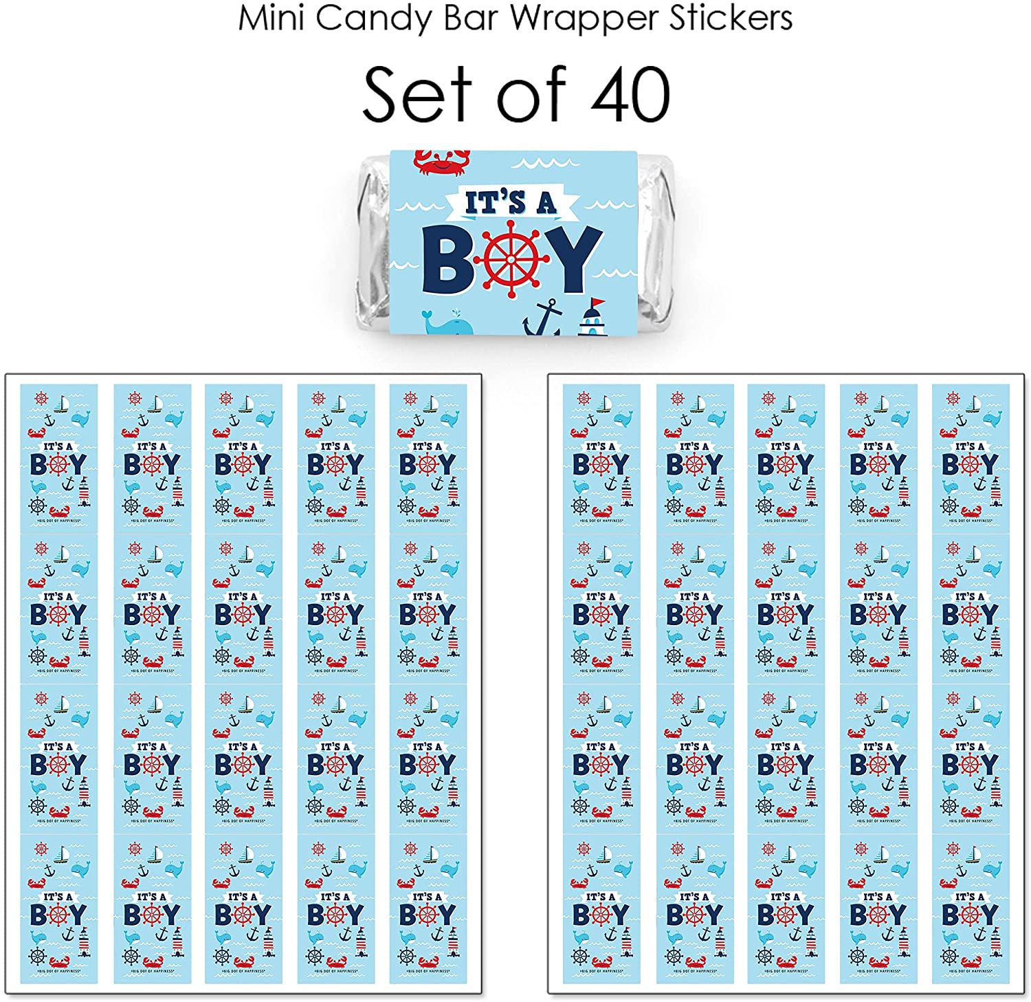 Ahoy It’s a Boy - Mini Candy Bar Wrapper Stickers - Nautical Baby Shower Small Favors - 40 Count is backordered and will ship as soon as it is back in stock.