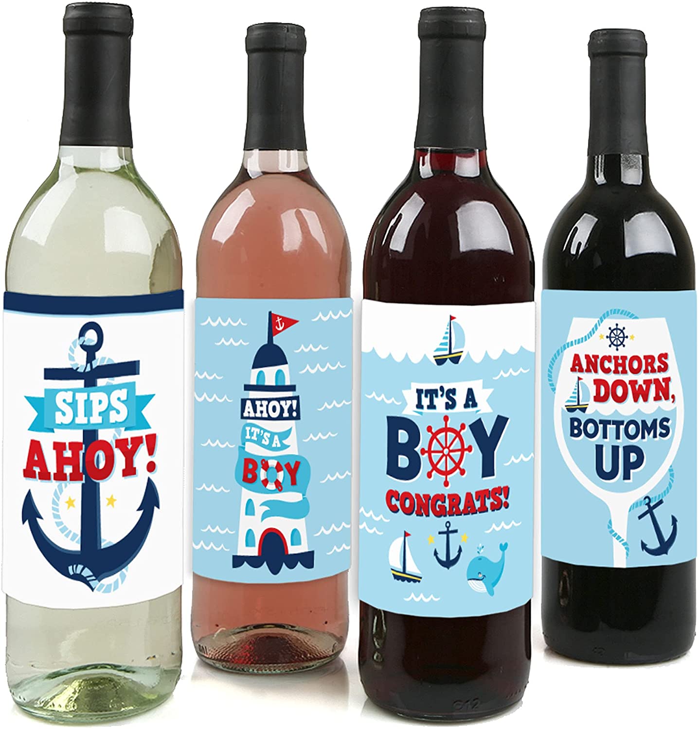 Ahoy It’s a Boy - Nautical Baby Shower Decorations for Women and Men - Wine Bottle Label Stickers - Set of 4 is backordered and will ship as soon as it is back in stock.