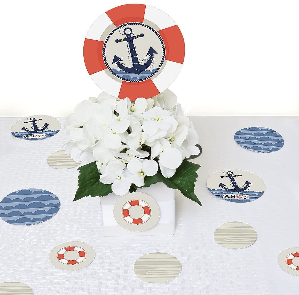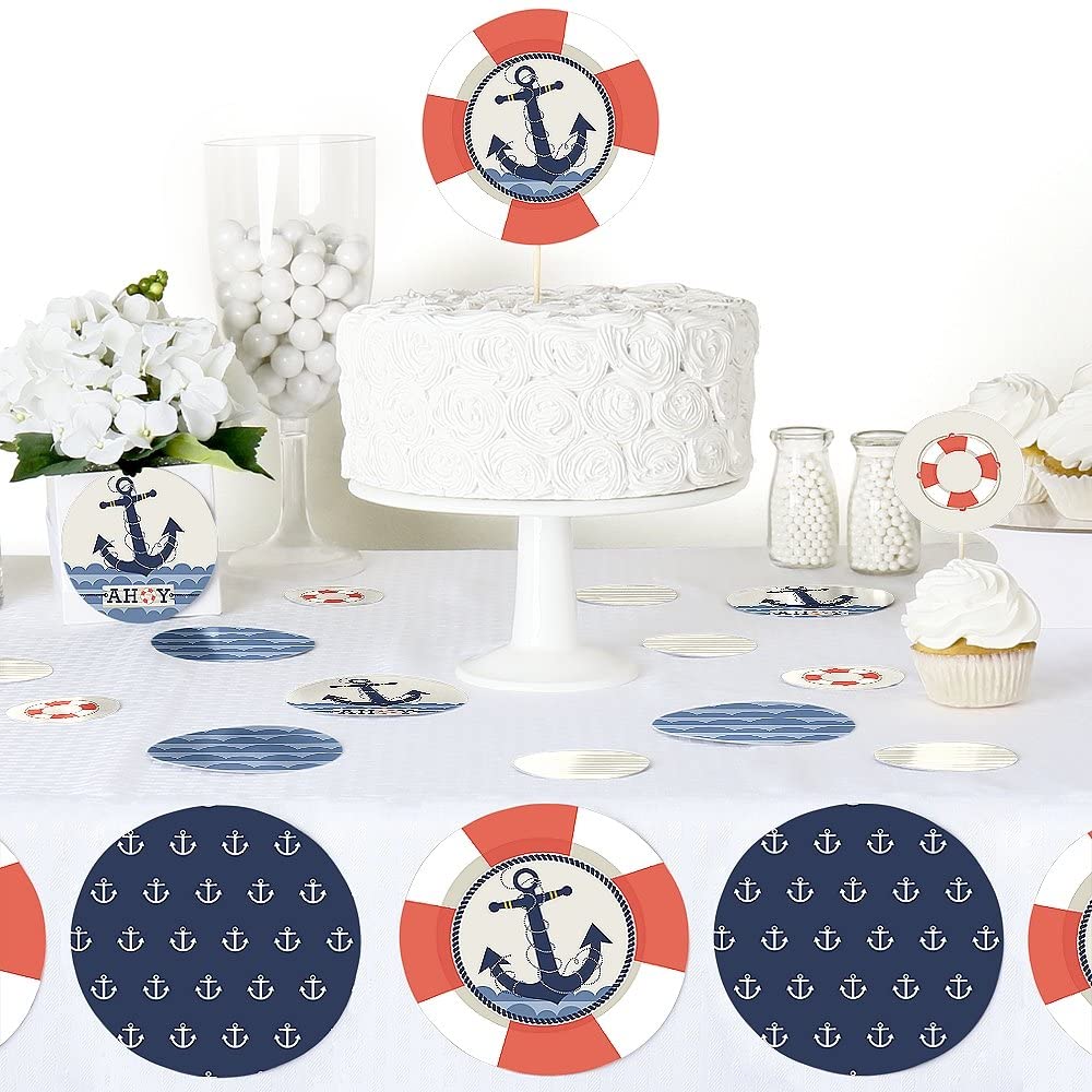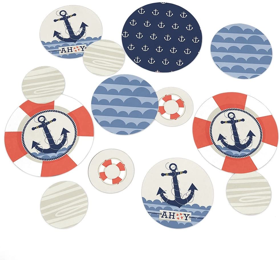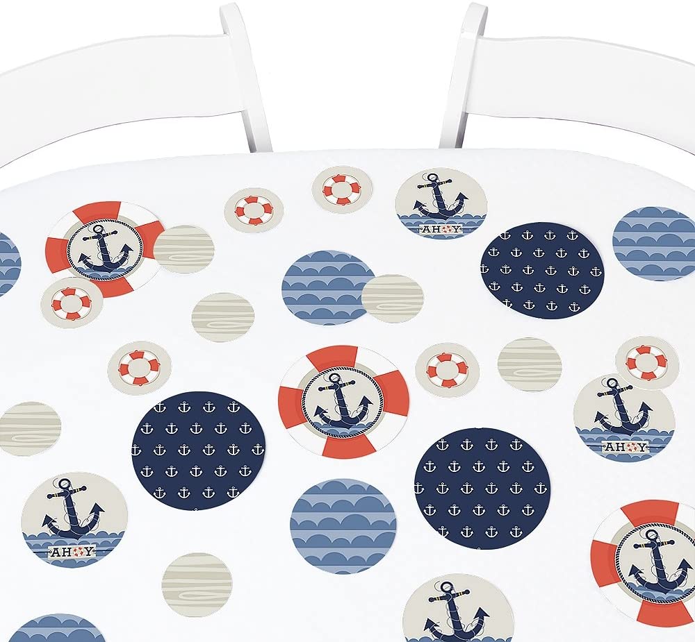 Ahoy - Nautical - Baby Shower or Birthday Party Giant Circle Confetti - Party Decorations - Large Confetti 27 Count is backordered and will ship as soon as it is back in stock.