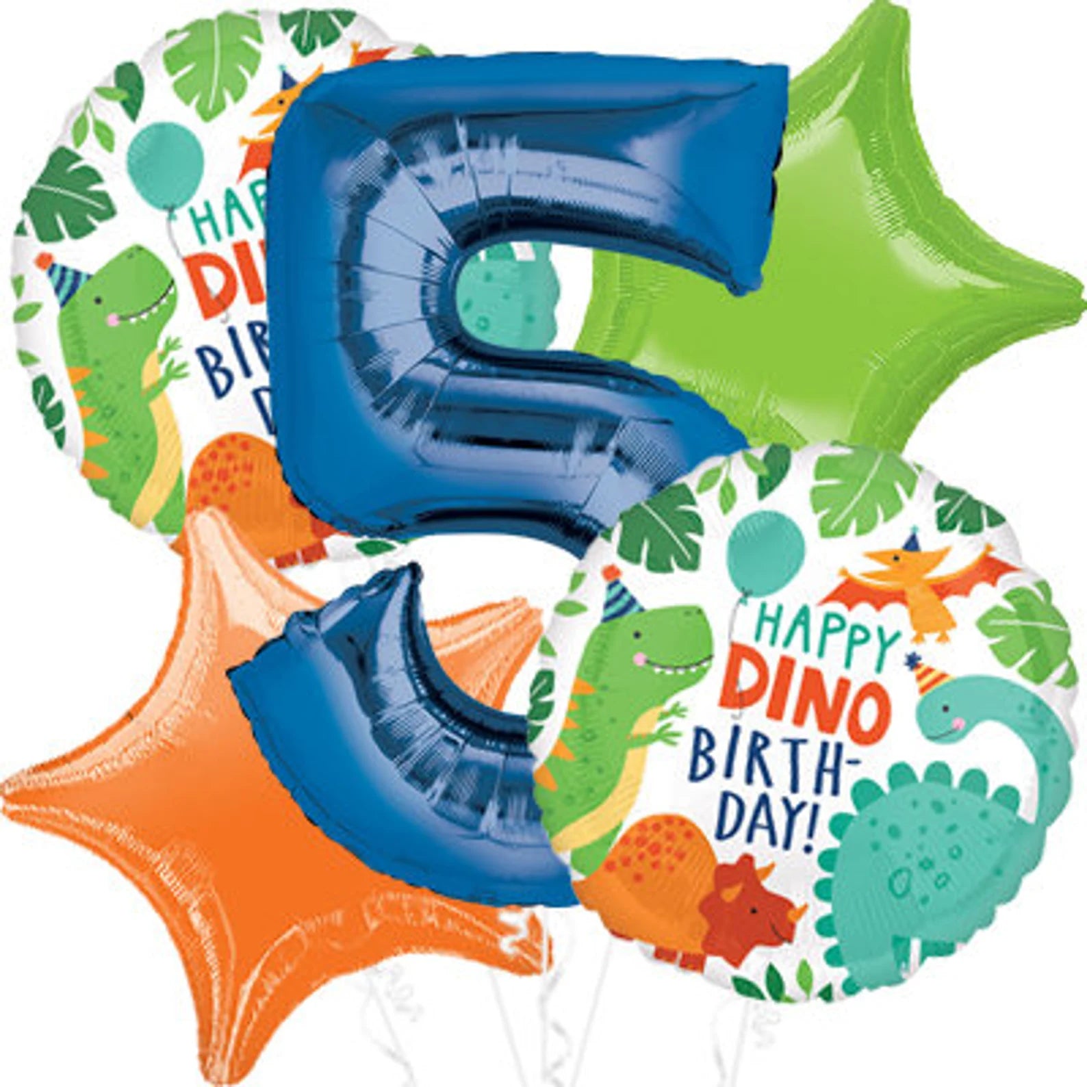 Includes:• 1 blue jumbo number Balloon (33" x 29")• 2 star Balloons (19")• 2 round happy birthday happy dino birth day Balloons (18")