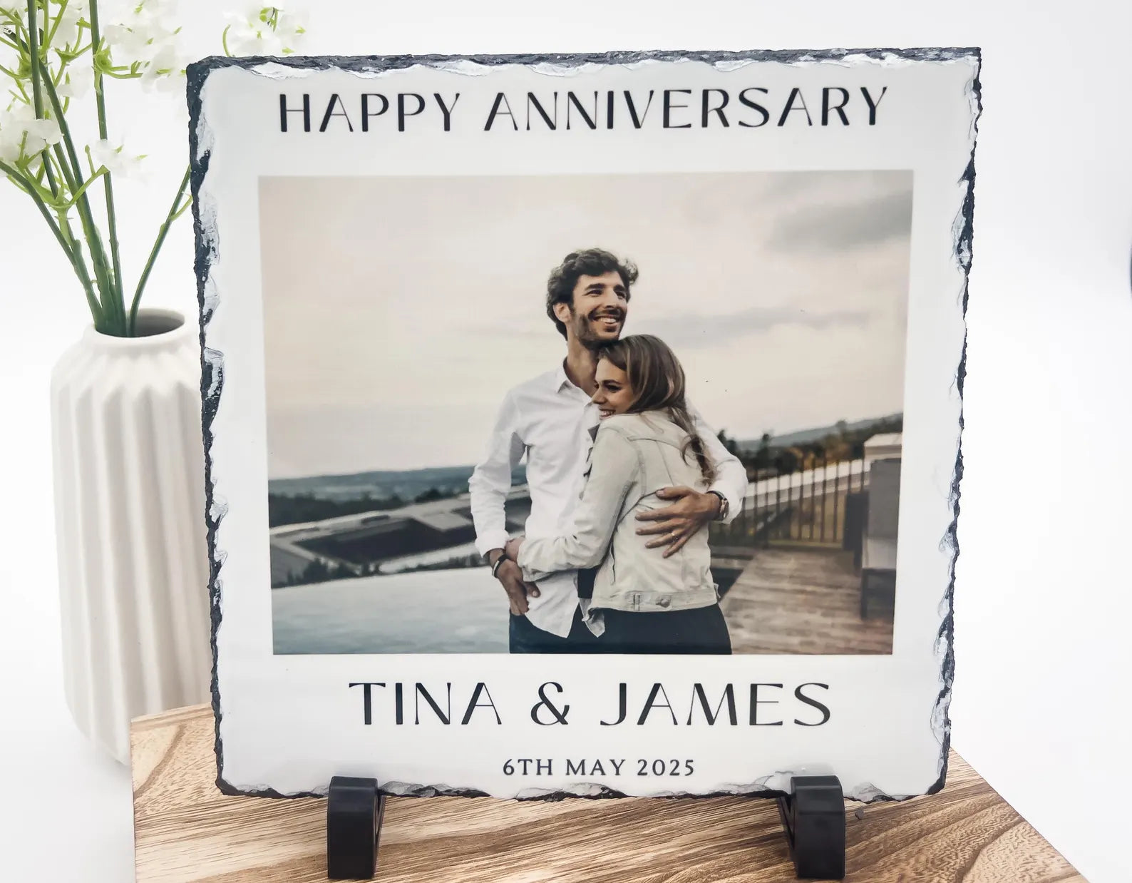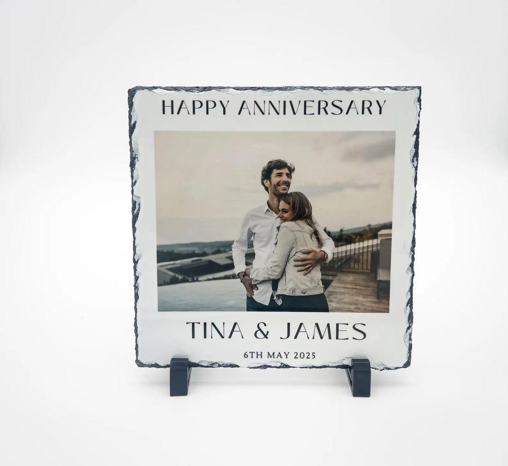 Celebrate a special occasion with the timeless elegance of our Personalised Photo Slate Gift. This unique photo frame, crafted from natural stone slate, offers a one-of-a-kind way to display cherished memories, making it an exceptional gift for anniversaries, weddings, or any momentous event.