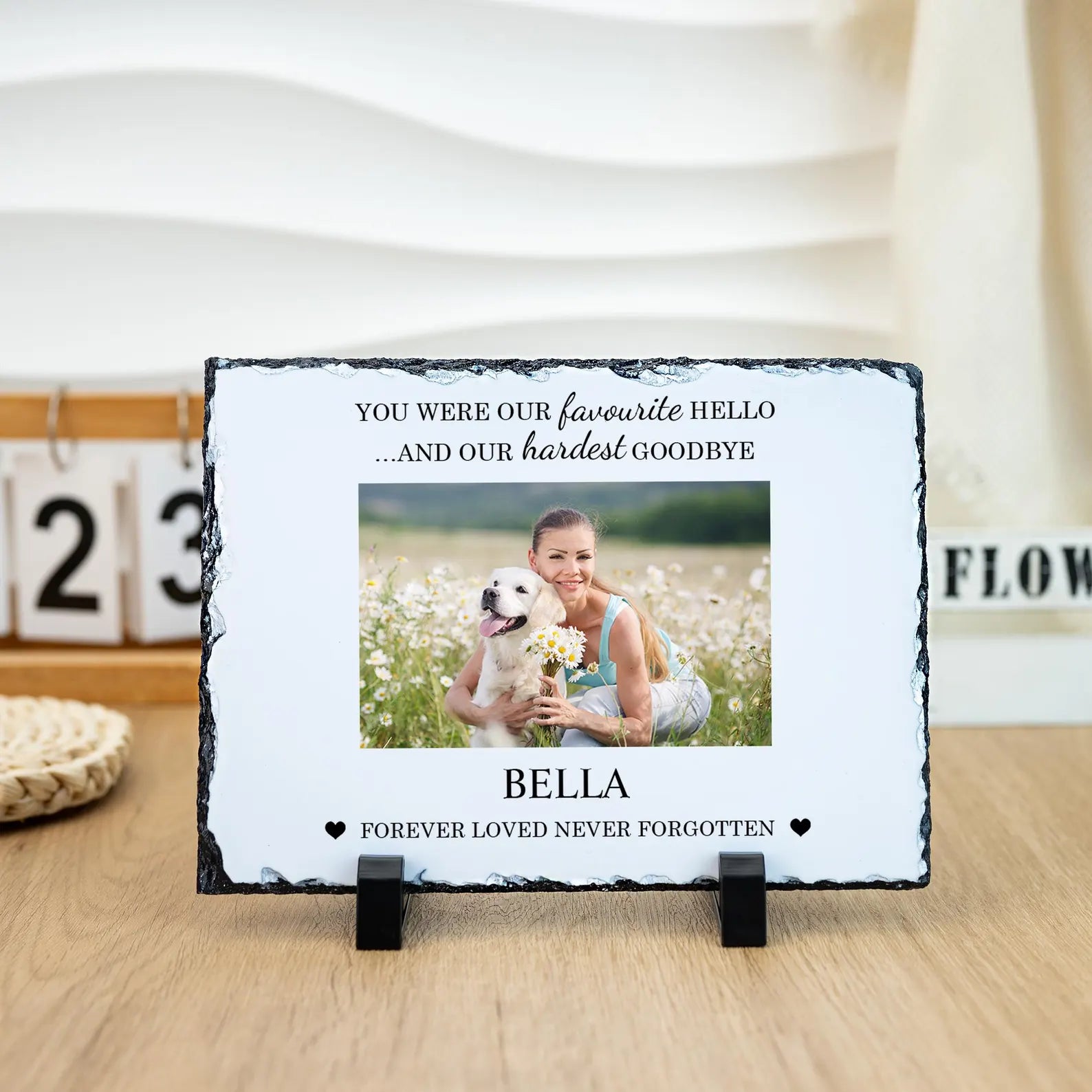 Your chosen photo is printed directly onto the slate using state-of-the-art technology that ensures vibrant colors and sharp details. The result is a durable and weather-resistant plaque that preserves your memories in a stunning display.