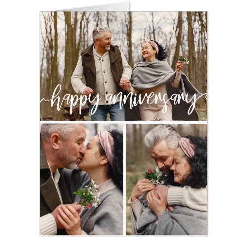 Custom Three Photo Collage Brush Script Happy Anniversary Giant Card - 16.5 x 22 inches is backordered and will ship as soon as it is back in stock.