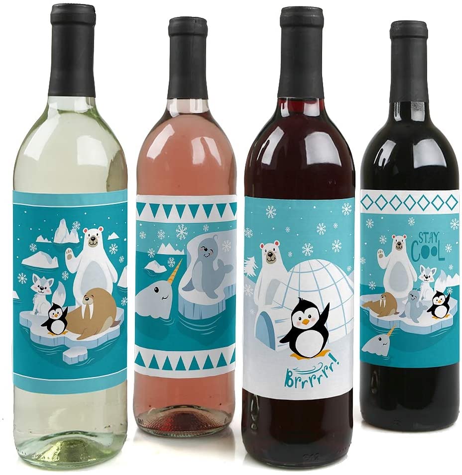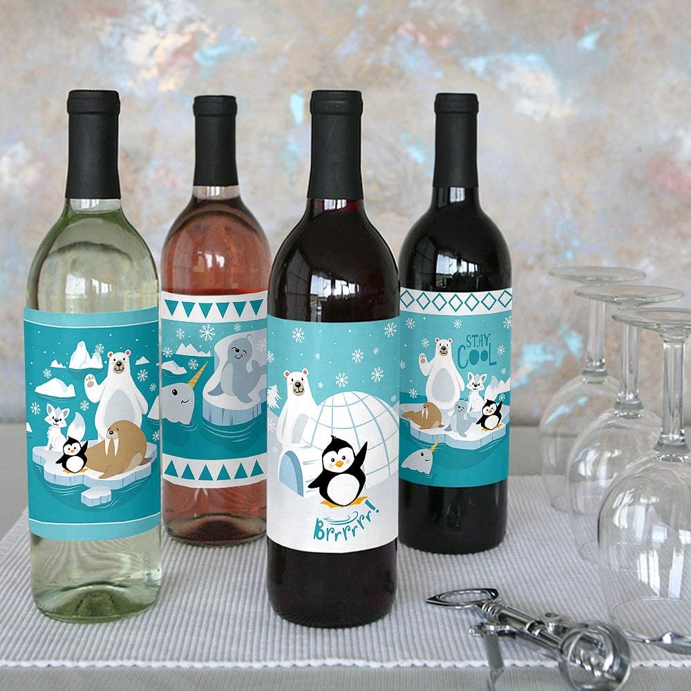 Arctic Polar Animals - Winter Baby Shower or Birthday Party Decorations for Women and Men - Wine Bottle Label Stickers - Set of 4 is backordered and will ship as soon as it is back in stock.