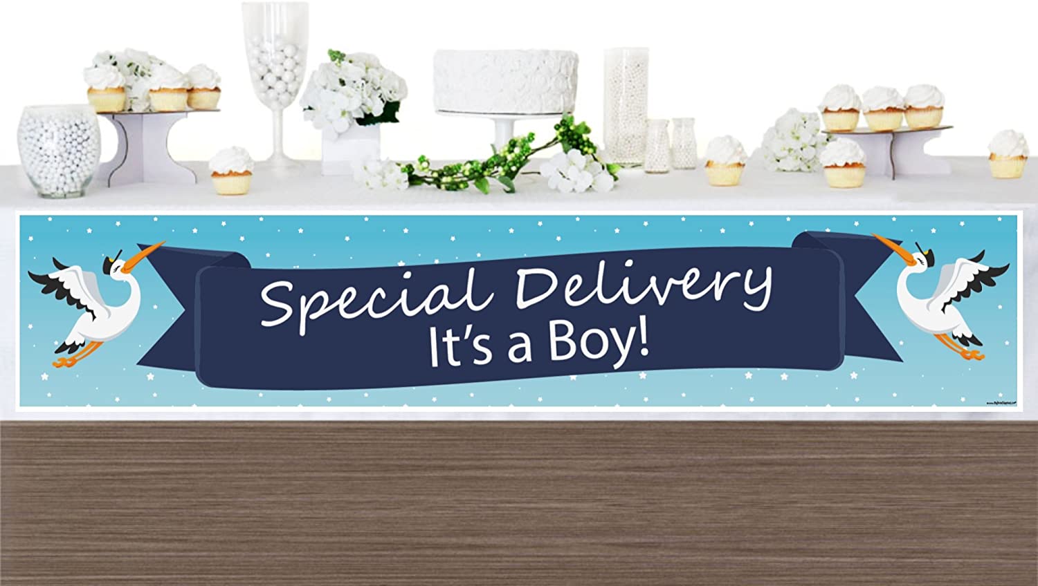 Boy Special Delivery - Blue It’s A Boy Stork Baby Shower Decorations Party Banner is backordered and will ship as soon as it is back in stock.