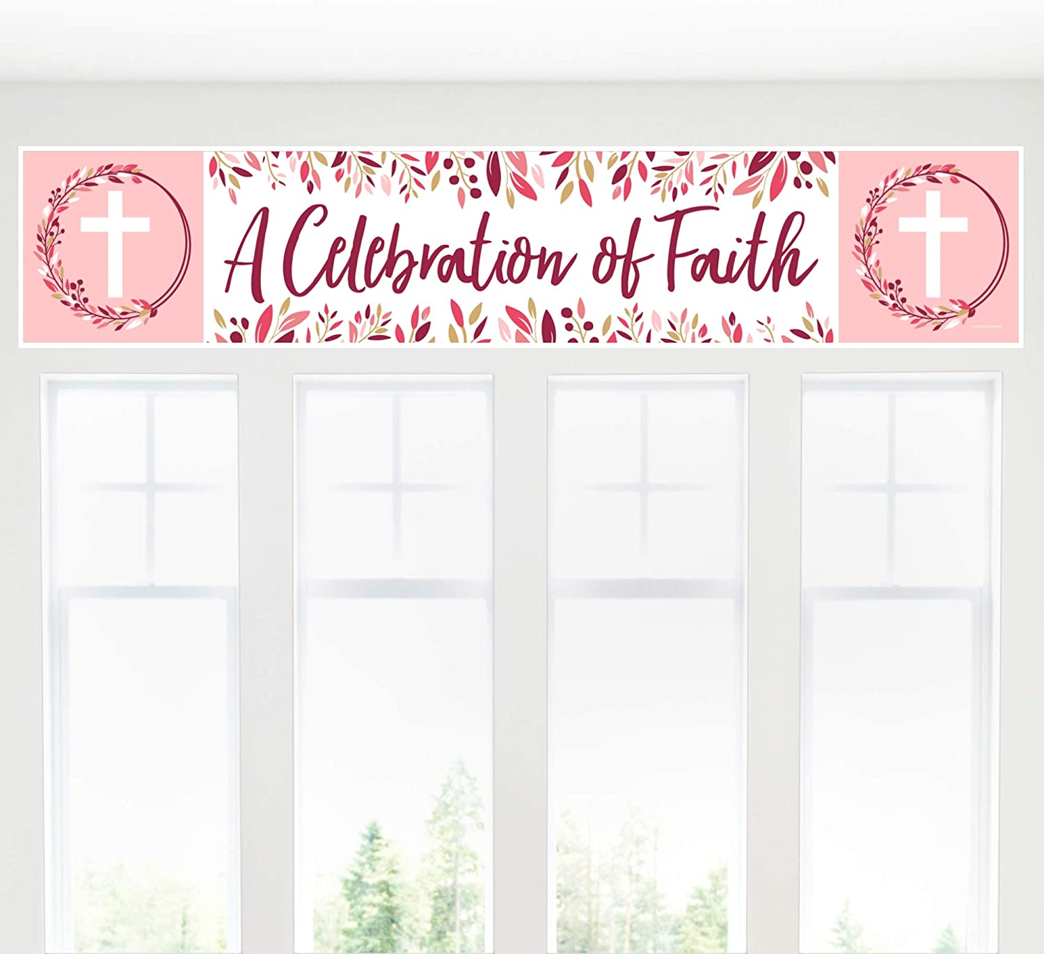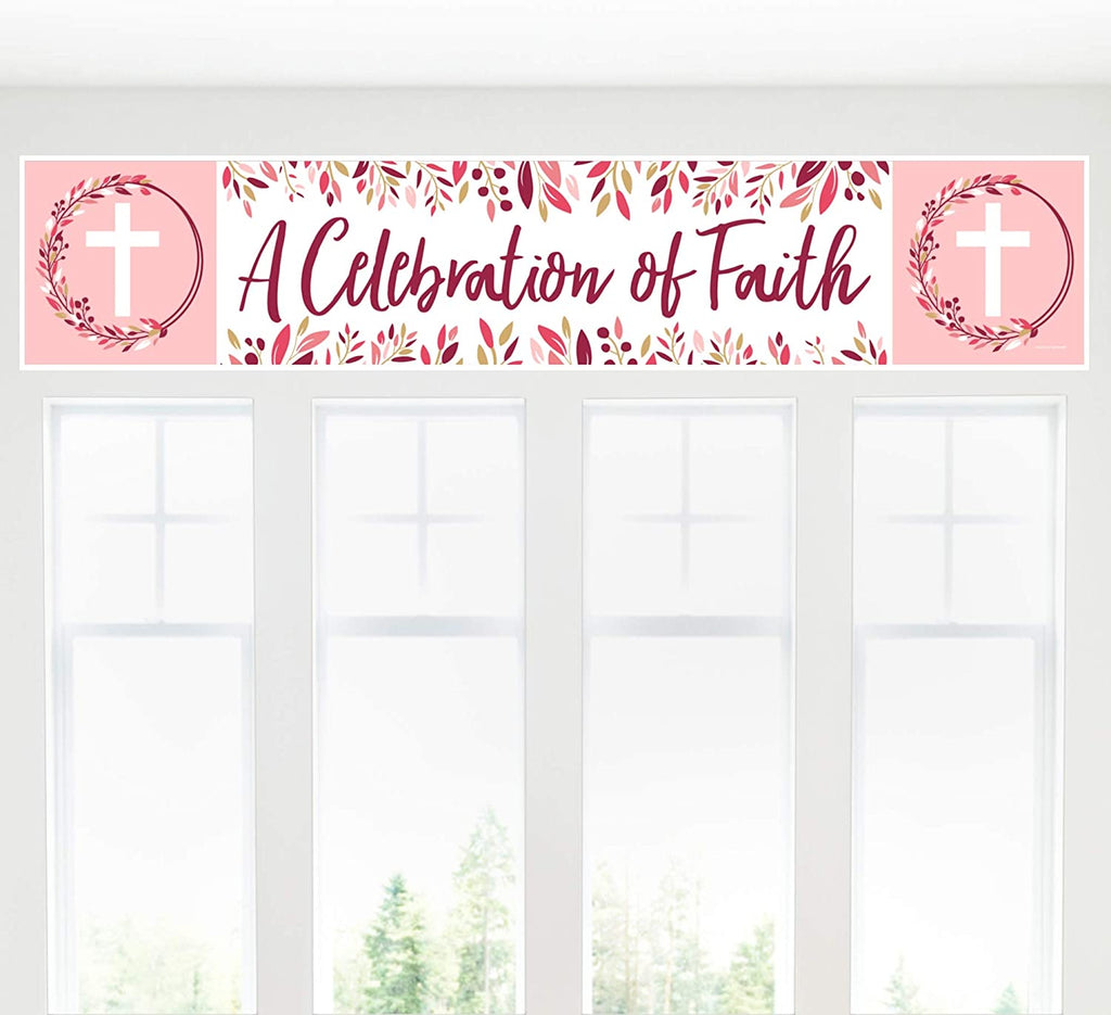 Pink Elegant Cross - Girl Religious Party Decorations Party Banner is backordered and will ship as soon as it is back in stock.