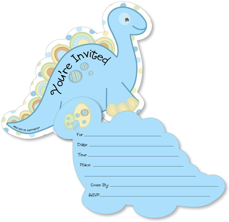 Baby Boy Dinosaur - Shaped Fill-In Invitations - Baby Shower or Birthday Party Invitation Cards with Envelopes - Set of 12 is backordered and will ship as soon as it is back in stock.