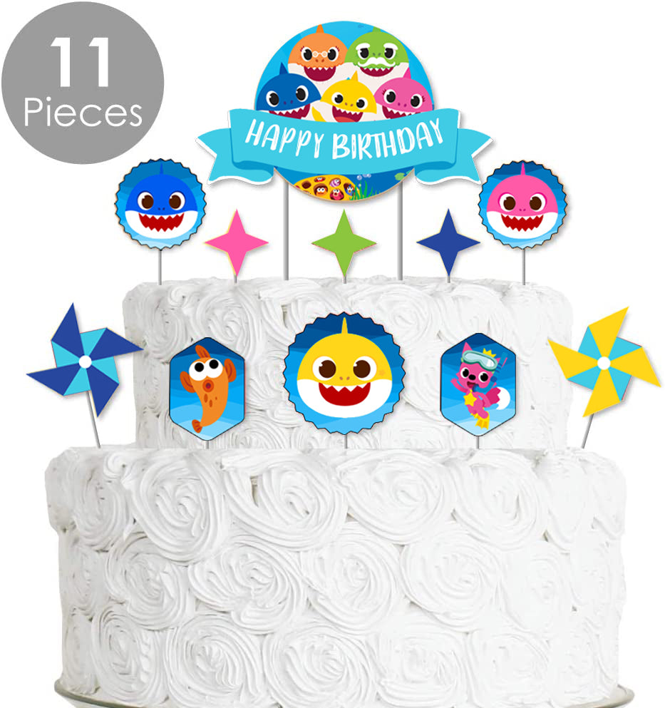 Baby Shark - Birthday Party Cake Decorating Kit - Happy Birthday Cake Topper Set - 11 Pieces