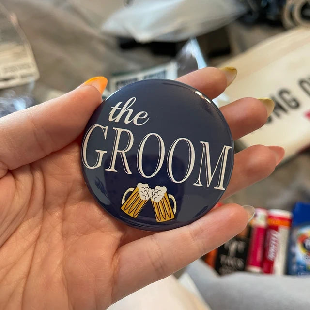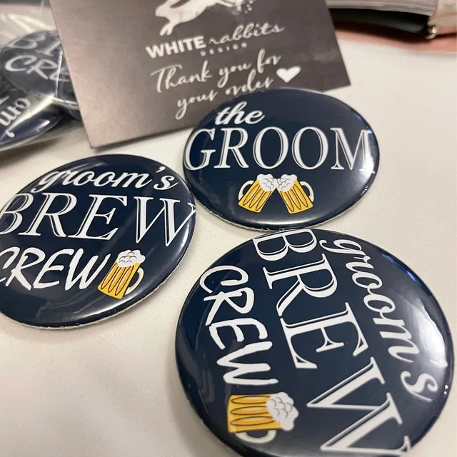 Groom Brew Crew Button 3 Inch - 1 is backordered and will ship as soon as it is back in stock.