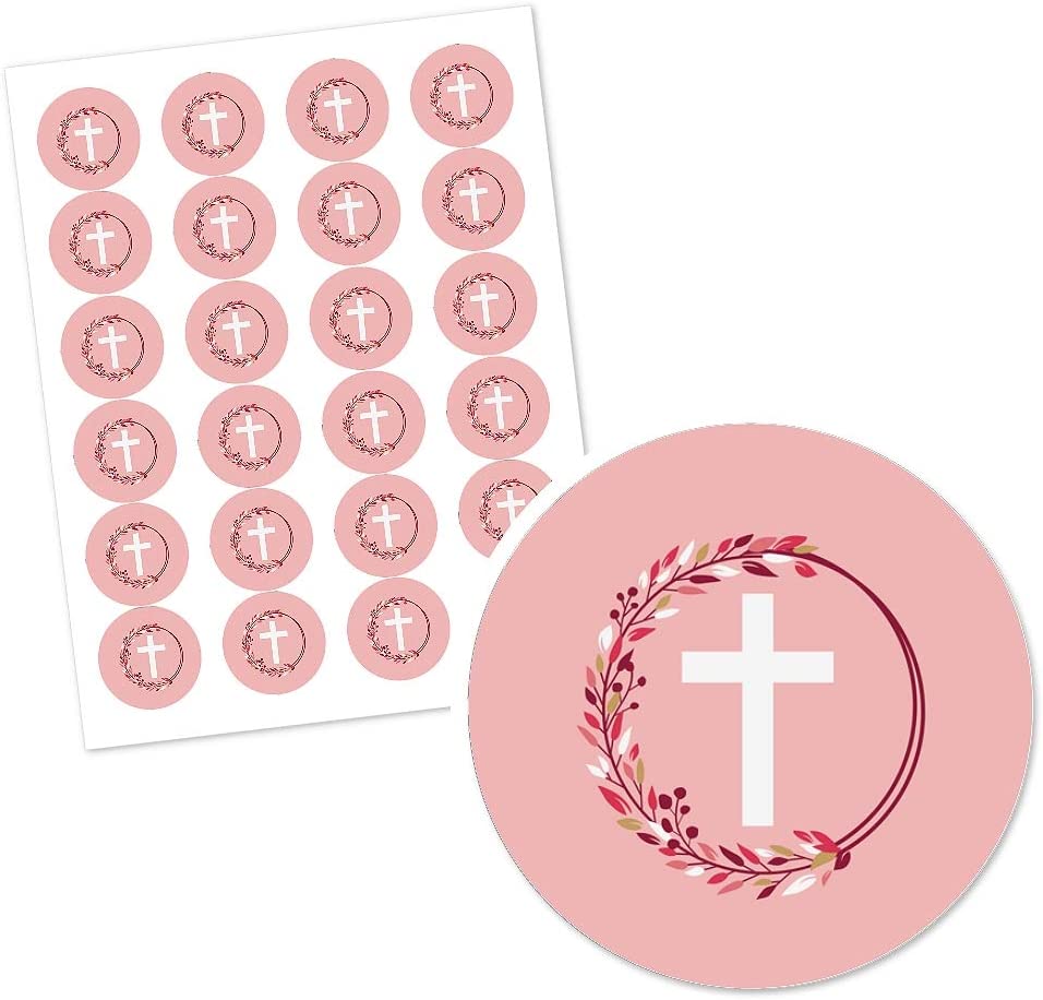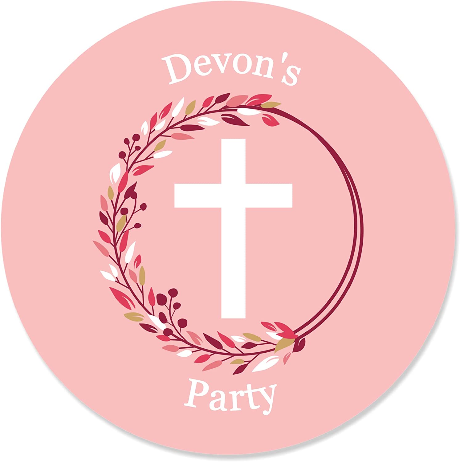 Personalized Pink Elegant Cross - Custom Girl Religious Party Favor Circle Sticker Labels - Custom Text - 24 Count is backordered and will ship as soon as it is back in stock.