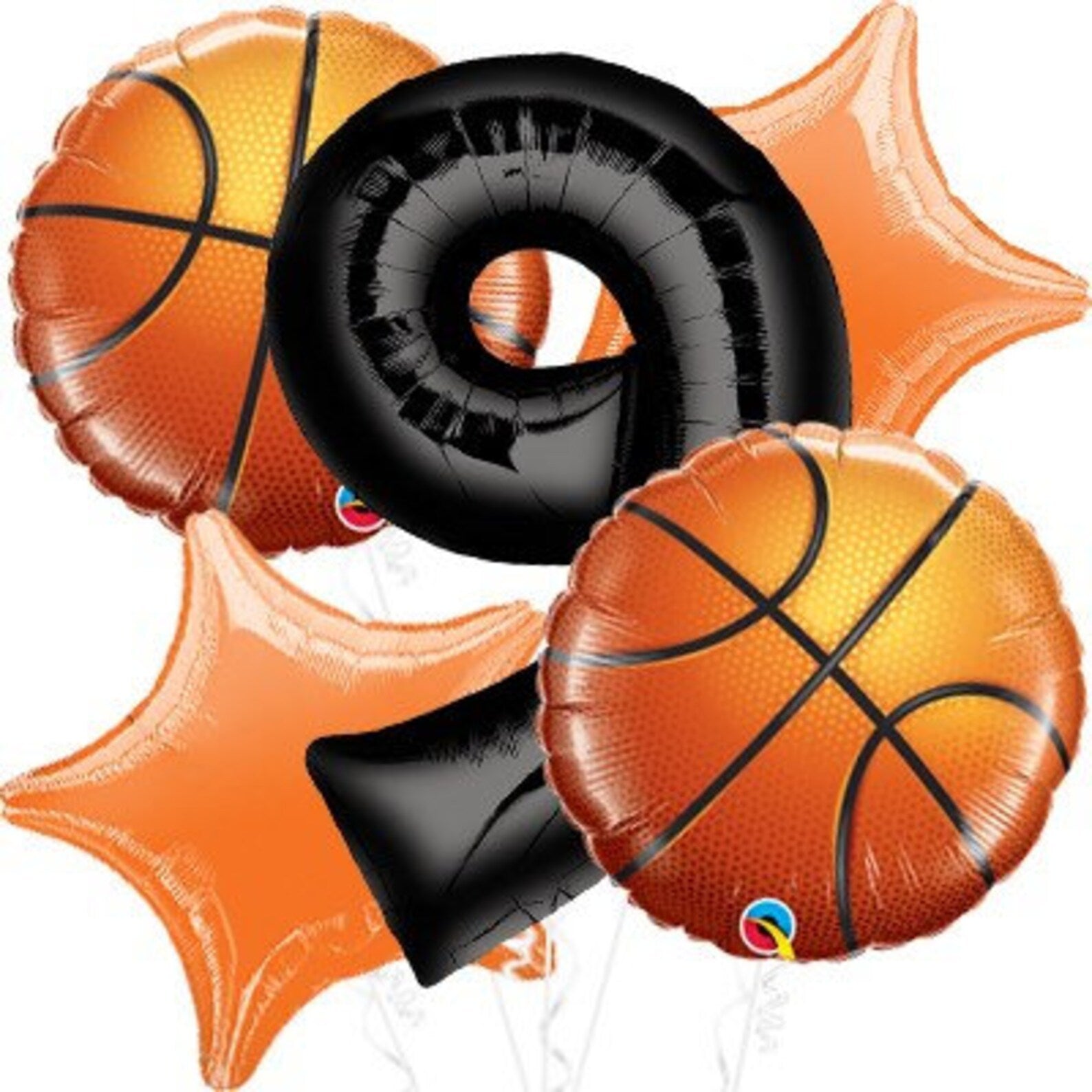 Includes:• 1 Black jumbo number Balloon (33" x 29")• 2 star Balloons (18")• 2 circle basketball Balloons (18")
