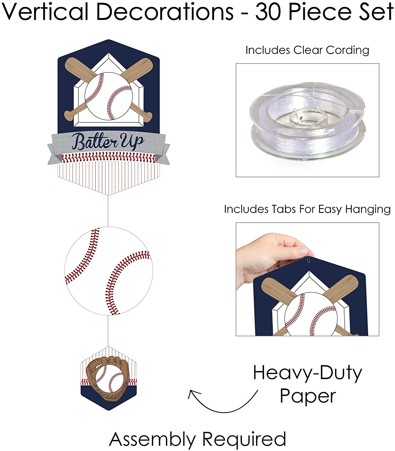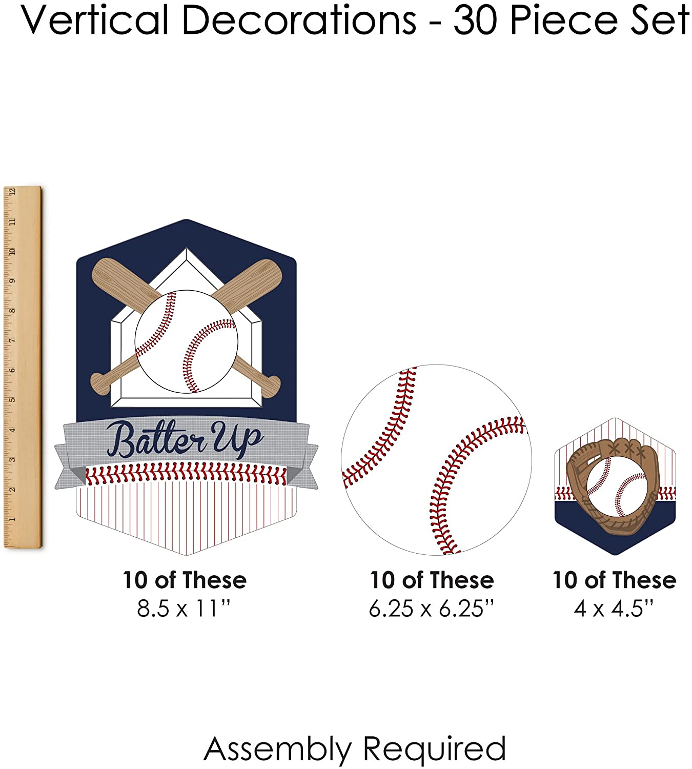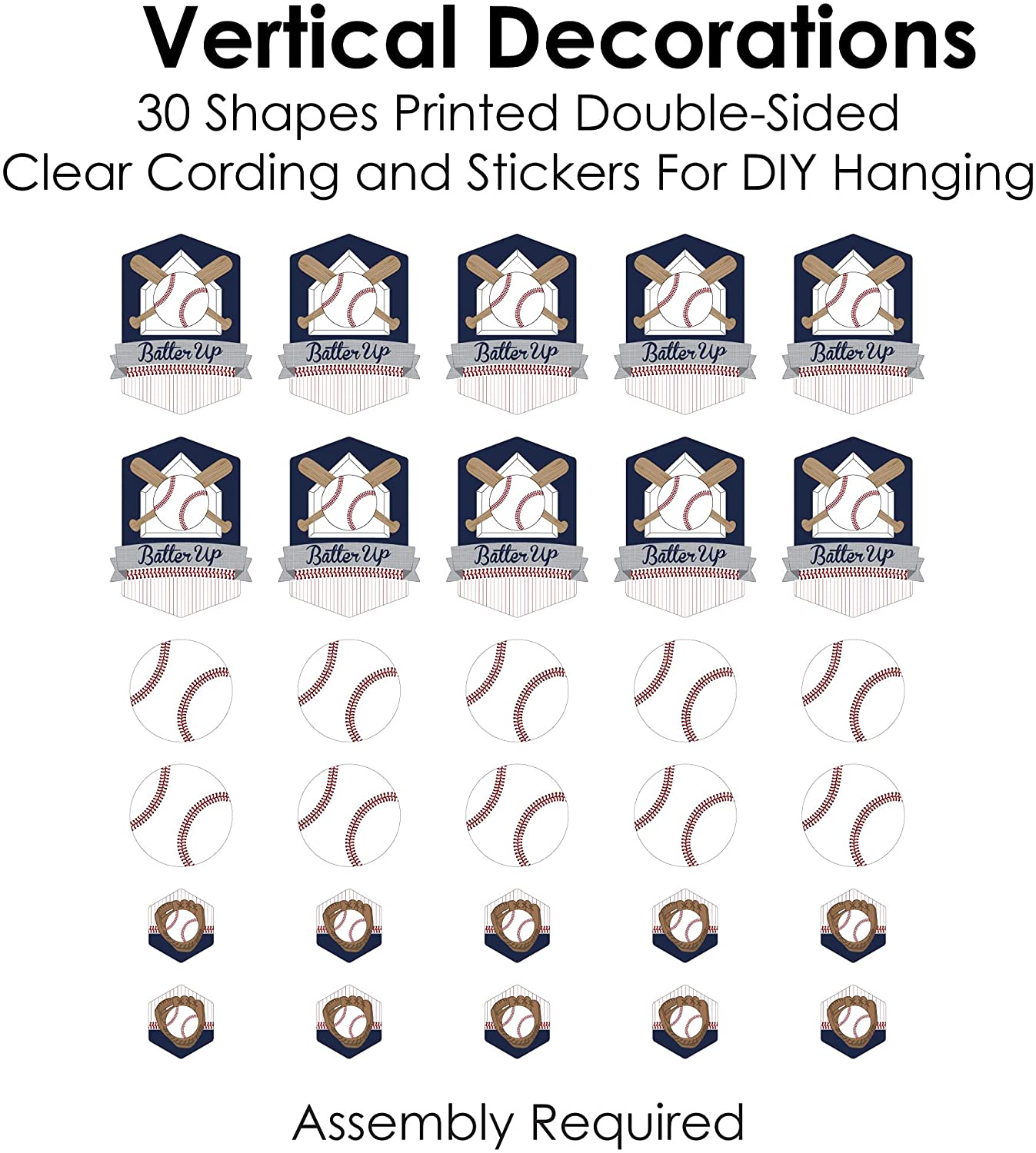Batter Up - Baseball - Baby Shower or Birthday Party DIY Dangler Backdrop - Hanging Vertical Decorations - 30 Pieces is backordered and will ship as soon as it is back in stock.