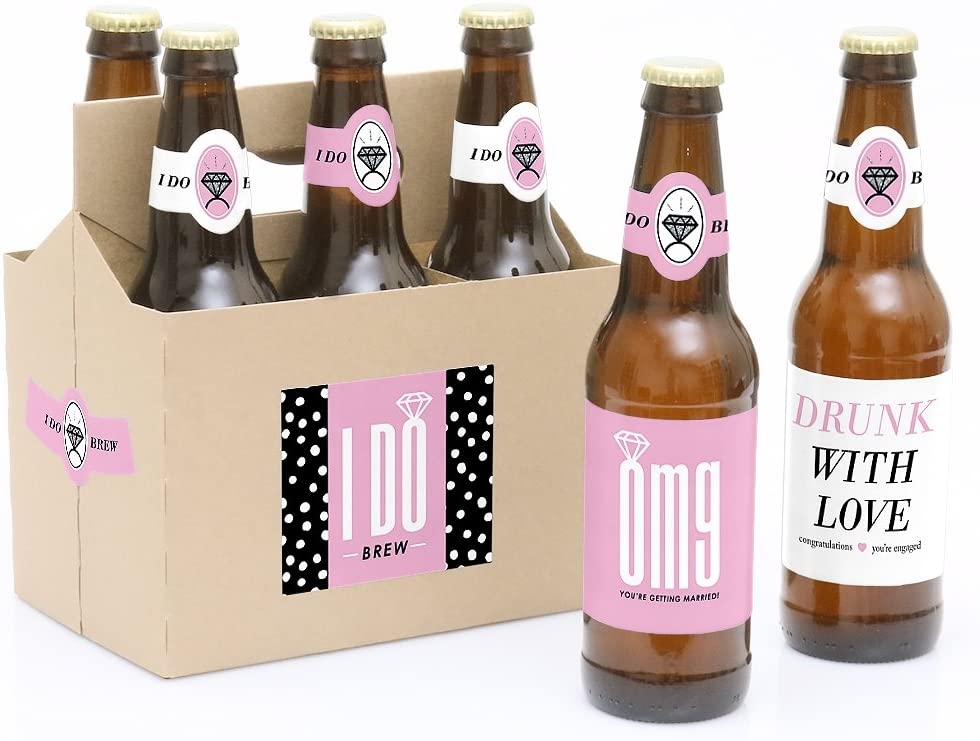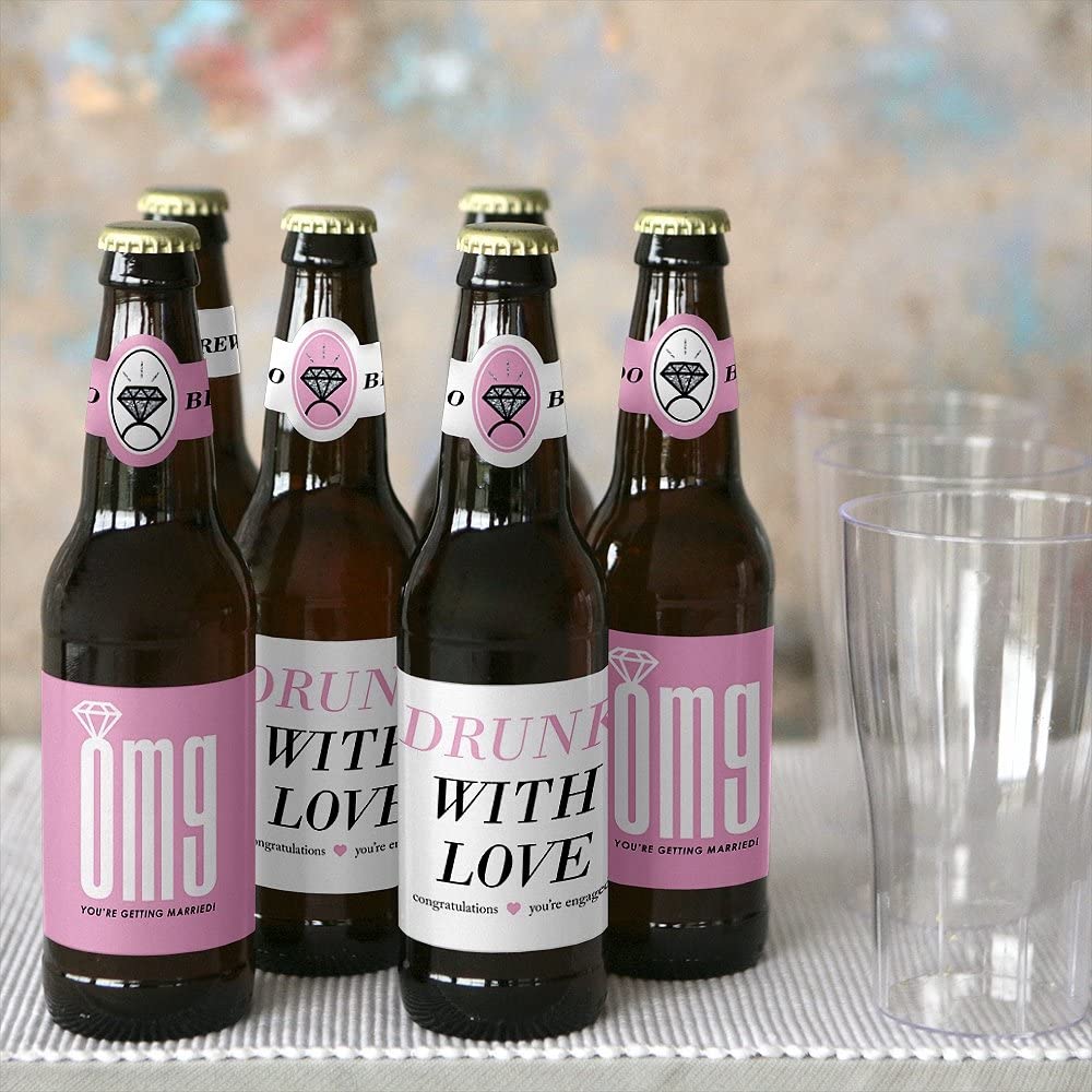 Omg, You're Getting Married - Engagement Party Decorations for Women - 6 Beer Bottle Label Stickers and 1 Carrier is backordered and will ship as soon as it is back in stock.
