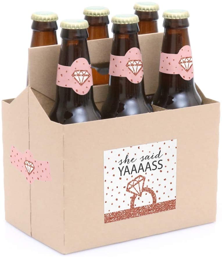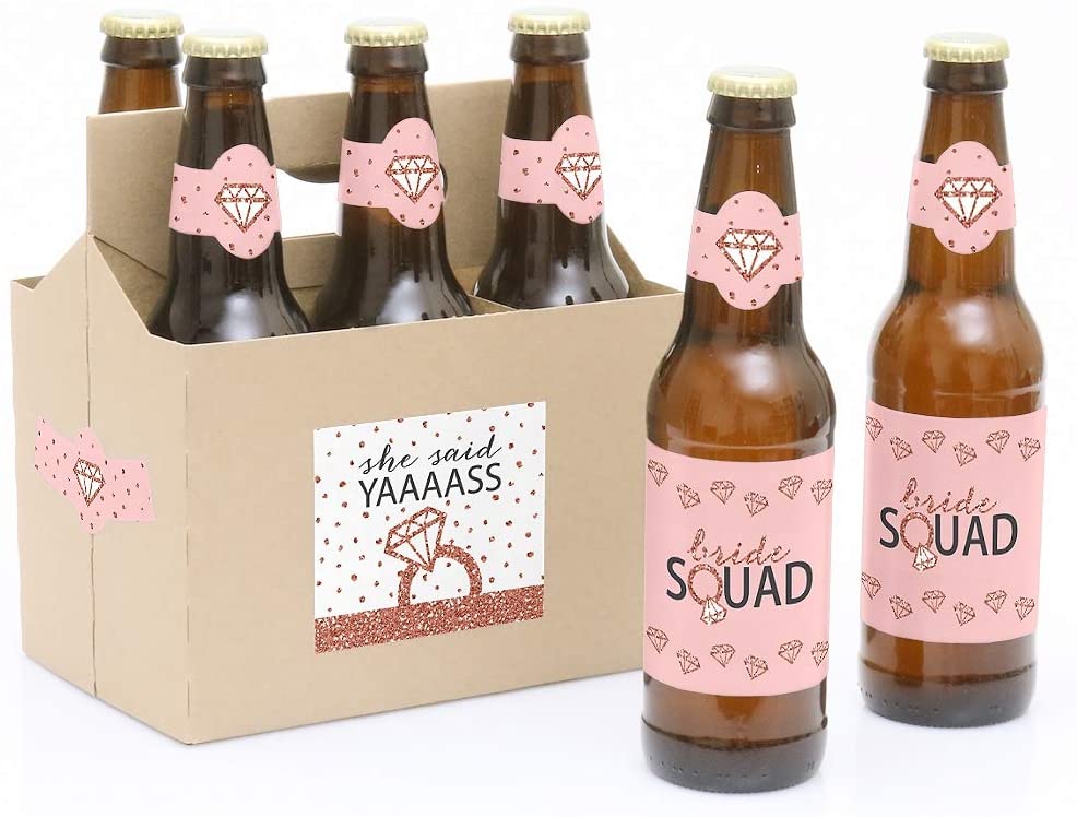 • Bride Squad Beer Gift Set INCLUDES 6 beer bottle sticker labels & 6 bottle neck labels in the rose gold theme, as well as 1 six-pack carrier with 4 rose gold stickers for decoration.