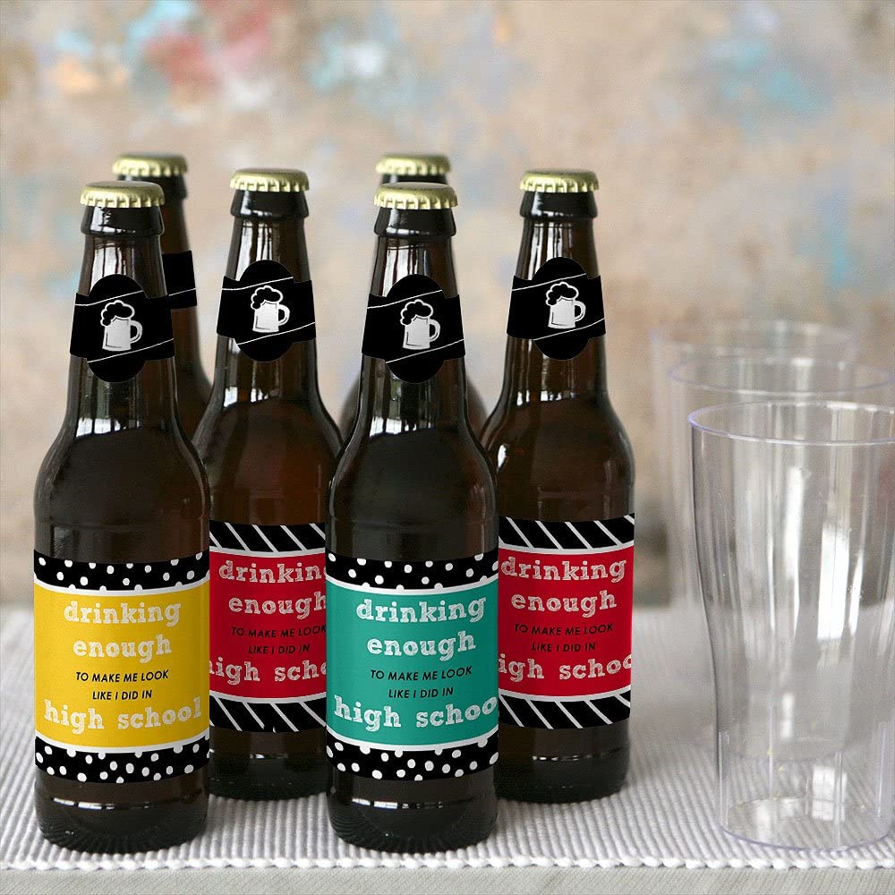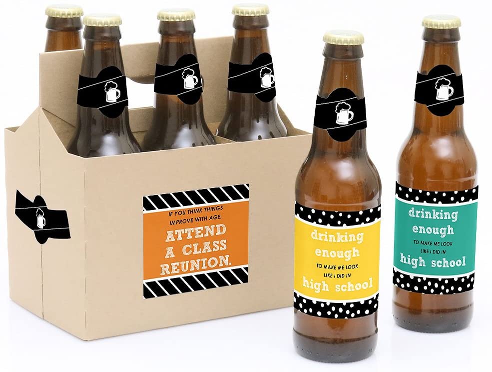 Class Reunion - Decorations for Women and Men - 6 Beer Bottle Label Stickers and 1 Carrier is backordered and will ship as soon as it is back in stock.