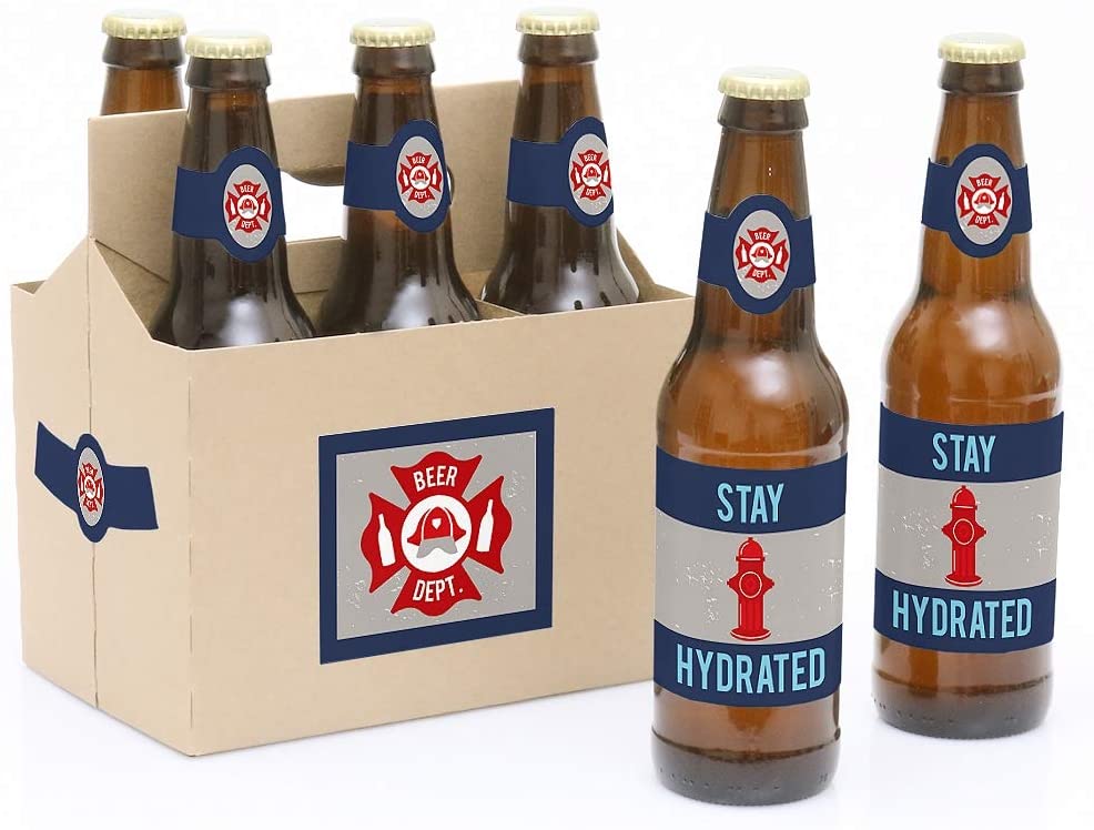 Fired Up Fire Truck - Firefighter Decorations for Women and Men - 6 Beer Bottle Label Stickers and 1 Carrier is backordered and will ship as soon as it is back in stock.