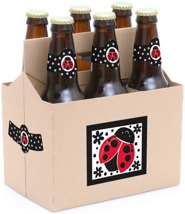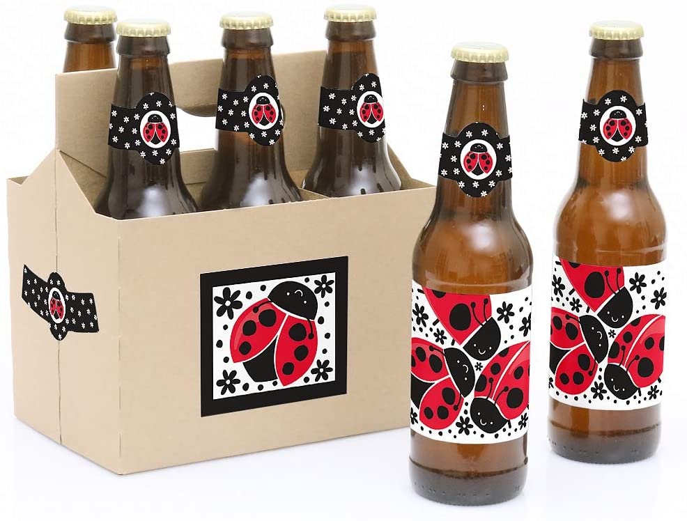 Happy Little Ladybug - Baby Shower or Birthday Party Decorations for Women and Men - 6 Beer Bottle Label Stickers and 1 Carrier is backordered and will ship as soon as it is back in stock.