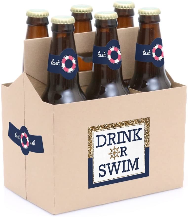 • MADE IN THE USA: Last Sail Before The Veil - Nautical Bridal Shower & Classy Bachelorette Party Beer Bottle Labels and Carrier is designed and manufactured at our Wisconsin facility using materials that are Made in the USA. Please Note: Beer in image is not included. Last Sail Before the Veil Beer Bottle Labels No-Mess Glitter Print: Our beverage labels are designed with a printed image of glitter, eliminating glitter flake while maximizing bling effect!