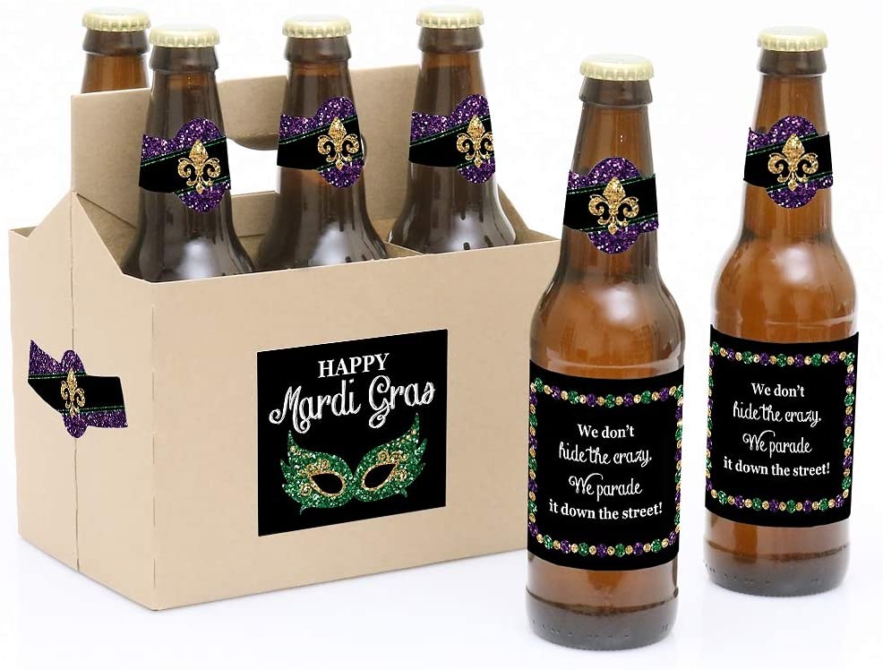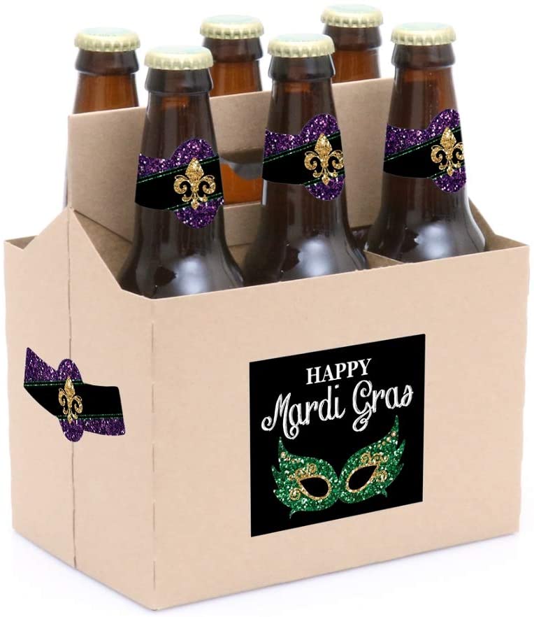 Mardi Gras - Masquerade Party Decorations for Women and Men - 6 Beer Bottle Label Stickers and 1 Carrier is backordered and will ship as soon as it is back in stock.